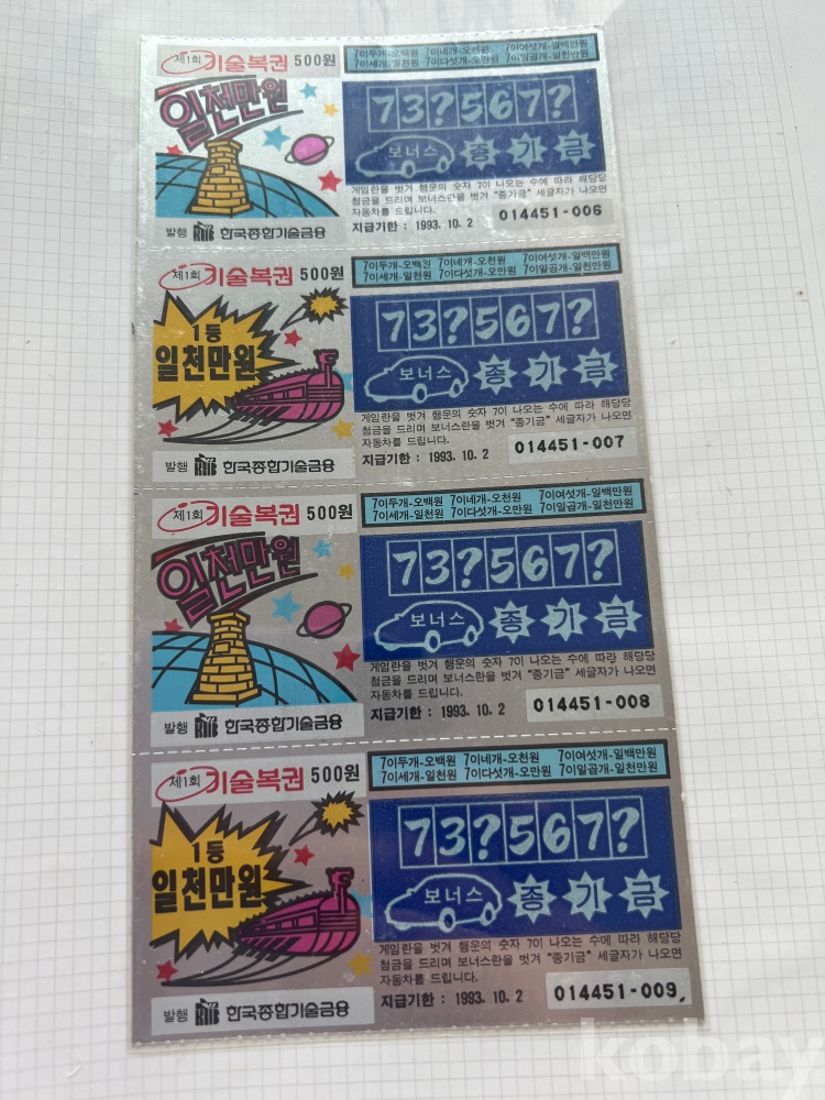 [고전] 희귀 기술복권 1회 미사용 즉석복권