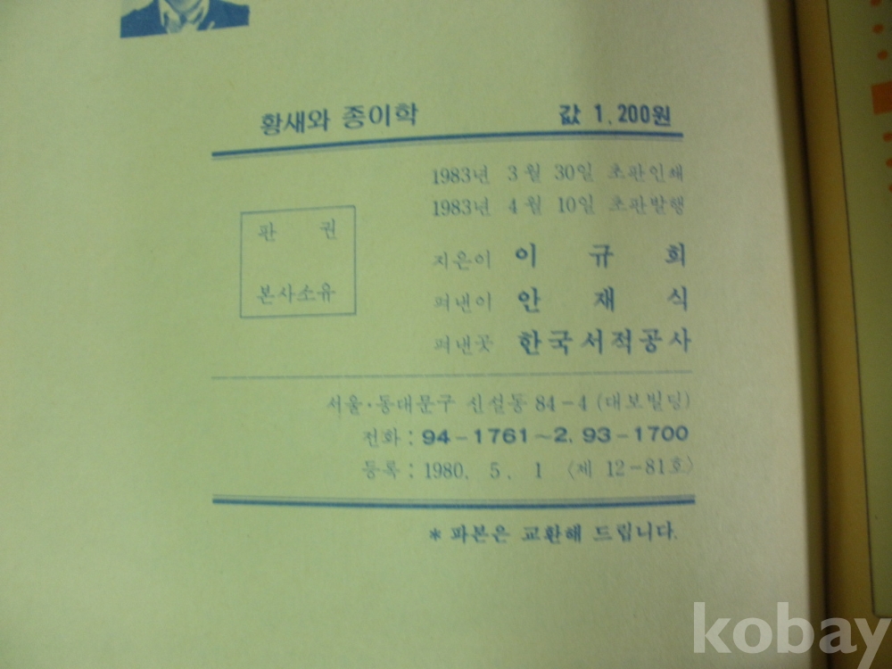 황새와 종이학 (1983년, 이규희 지음, 재활문고 일기운동, 한국서적공사)