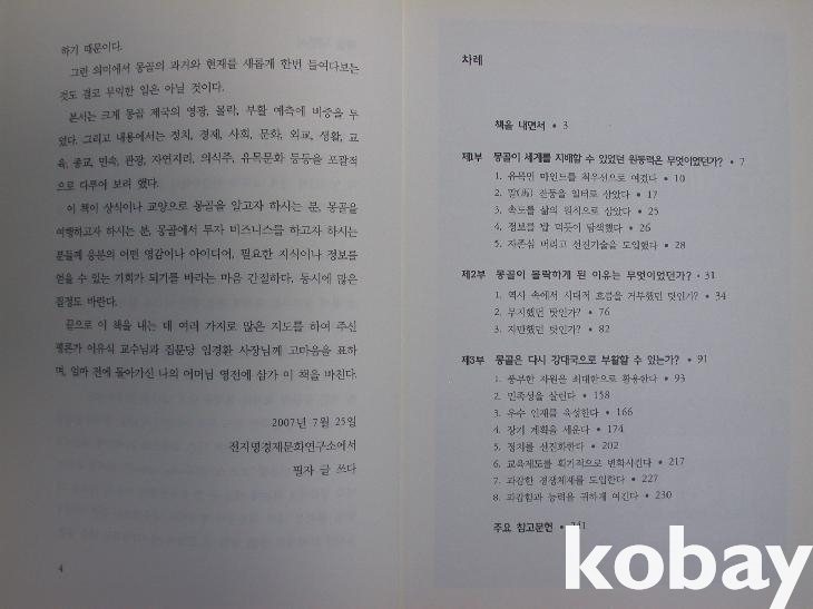지은이는 문인협회회원이며 CEO라고 소개하였다. 표지 제목 옆에 "몽골을 알아약 21세기가 보인다"는 말이 있다. 몽골의 과거와 현재를 포괄적으로 다뤘다는 머리말의 언급이 있다. 본문은 3부로 나누어 서술하였다.