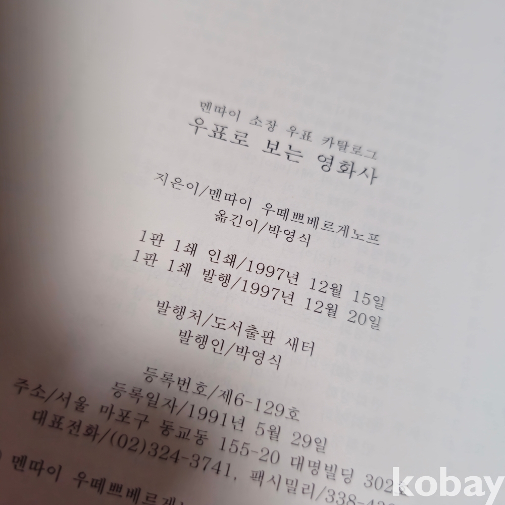 (((우취자료/영화자료))) 우표로보는 영화사 (멘따이 소장우표카달로그)(1997년 1판1쇄)(하드카바)