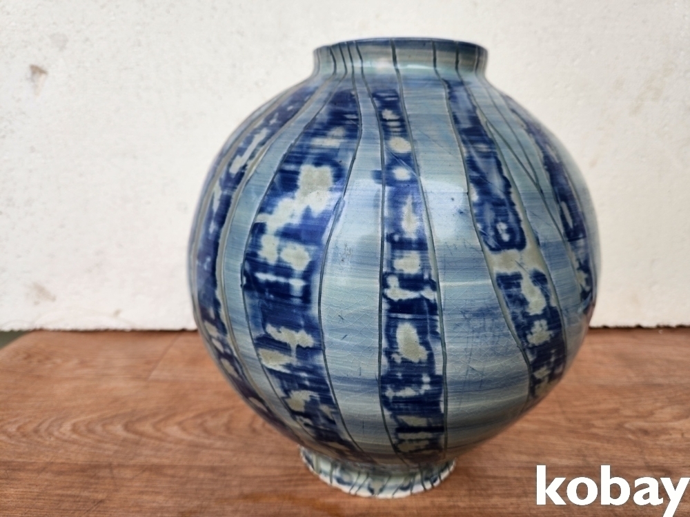 물결 문양이 입체감 있게 표현된 항 도자기 입니다.