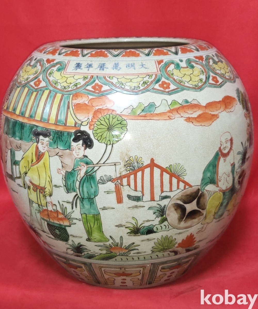 대명만력연제(1573ㅡ1620) 관지 청화 유리홍 송하인물(松下人物) 신선도(神仙圖)문양
