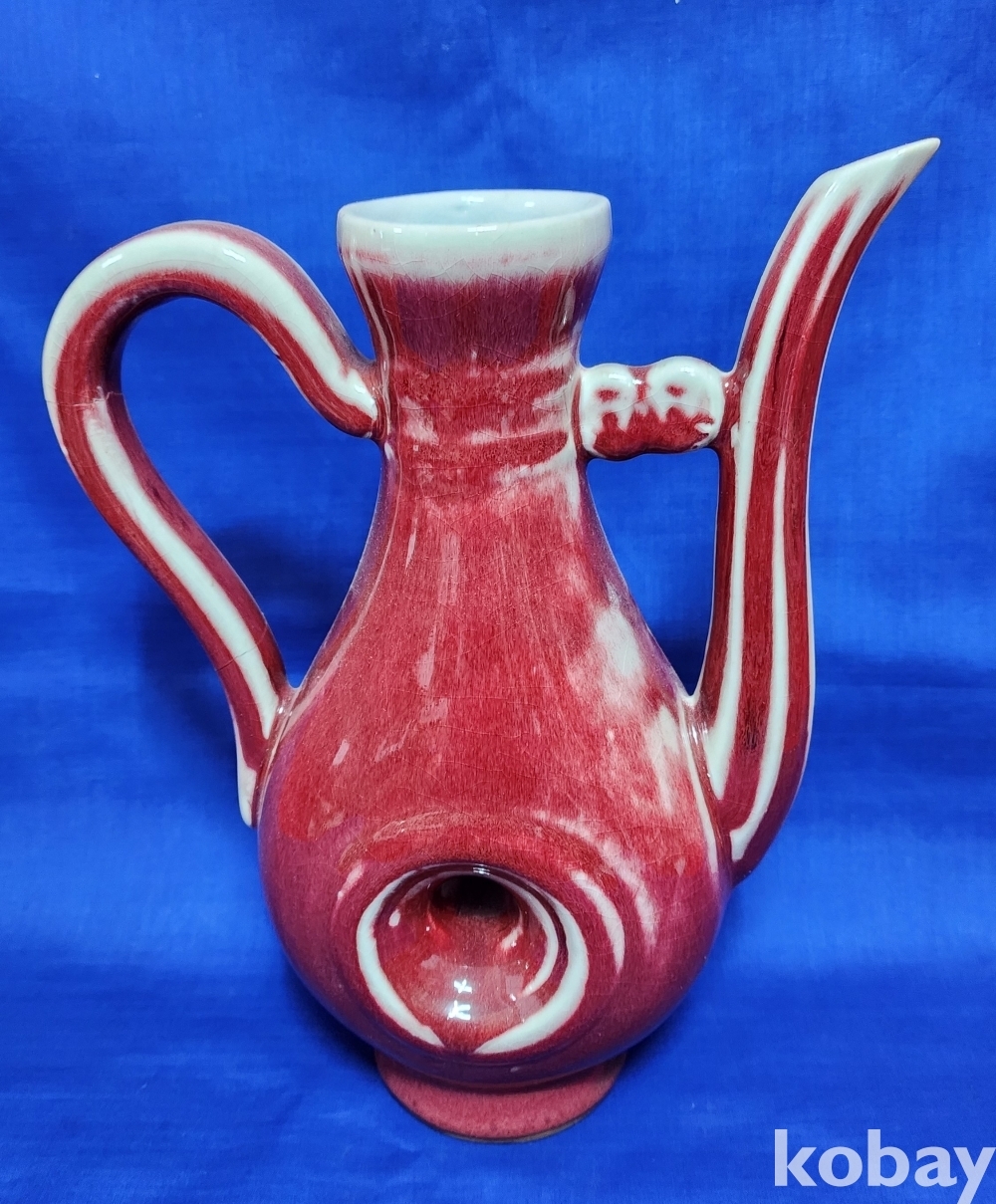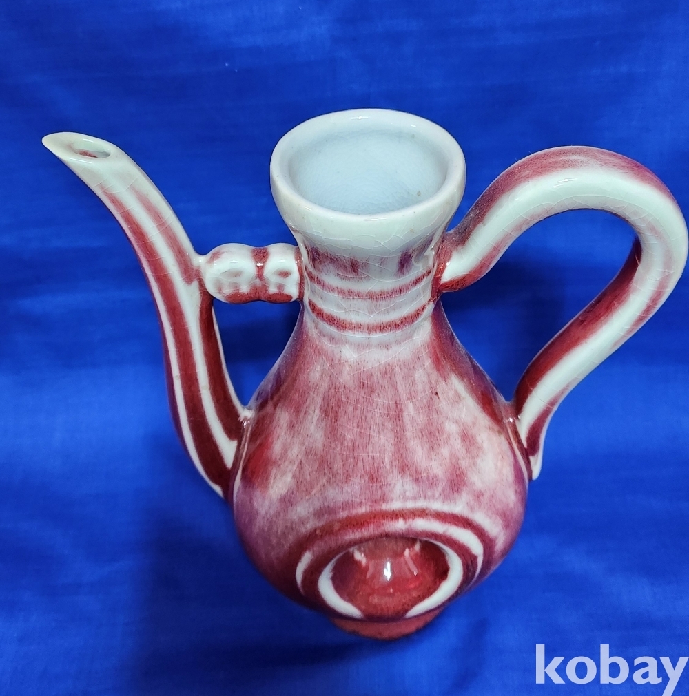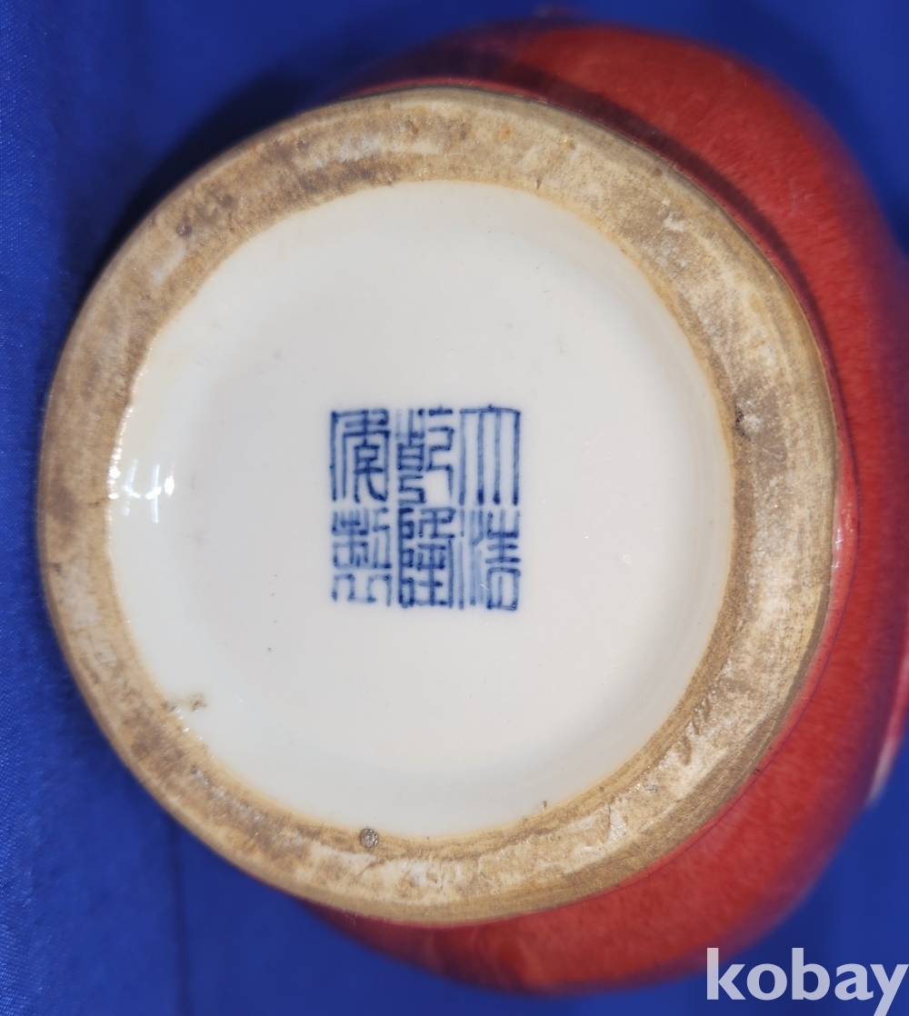 규격(cm) 대청건륭관지 보이는 진사 투각 주자형 기물입니다,기물 중앙에는 관통이 보임니다,손잡이는 제살 붙임입니다,
