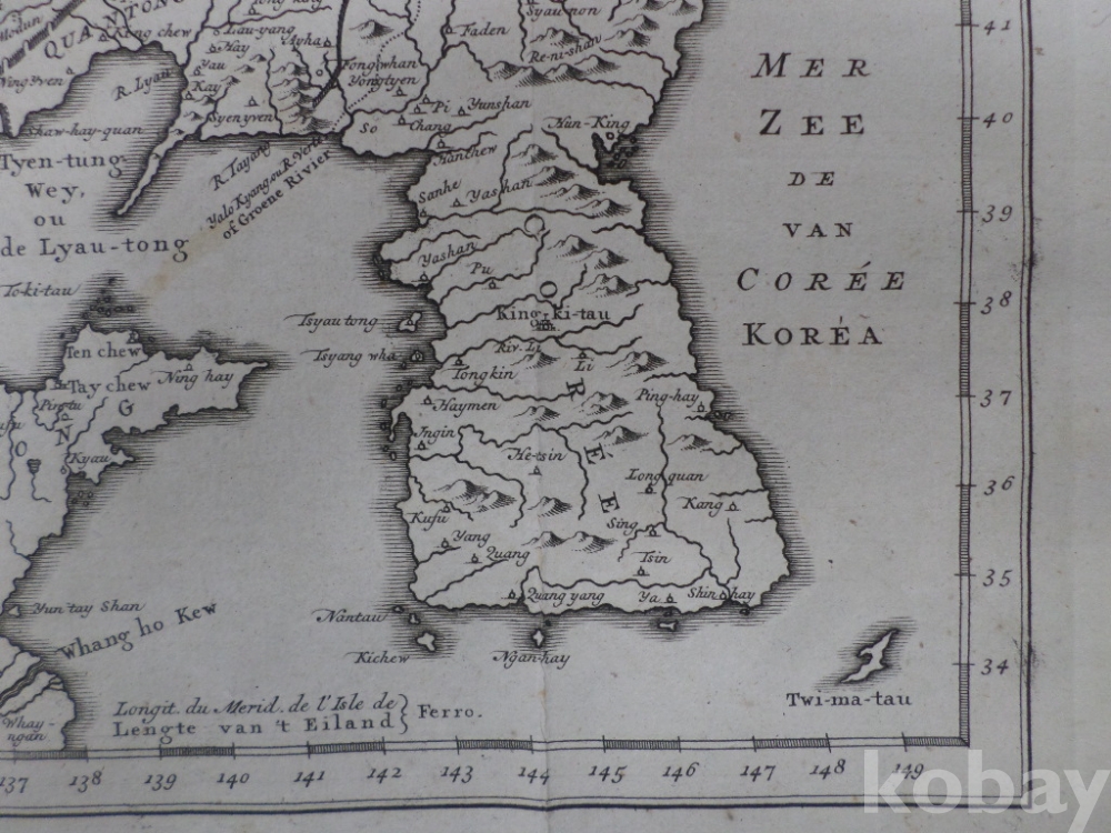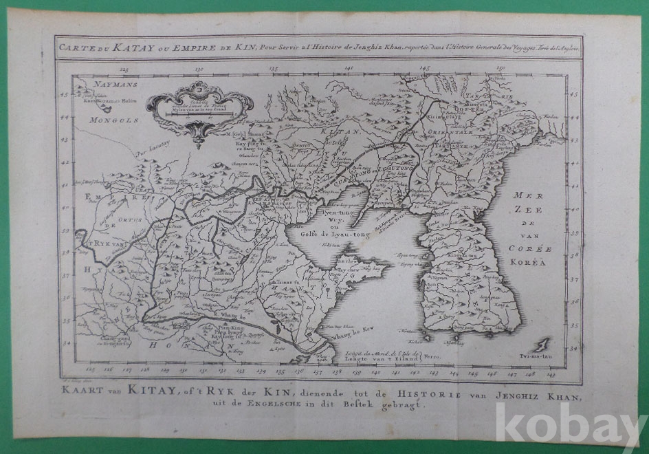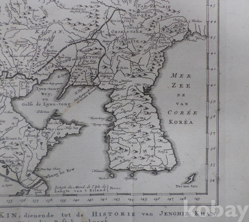 동해를 [MER DE COREE]로 표기한 동판지도지도명; CARTE DU KATAY OU EMPIRE DU KIN