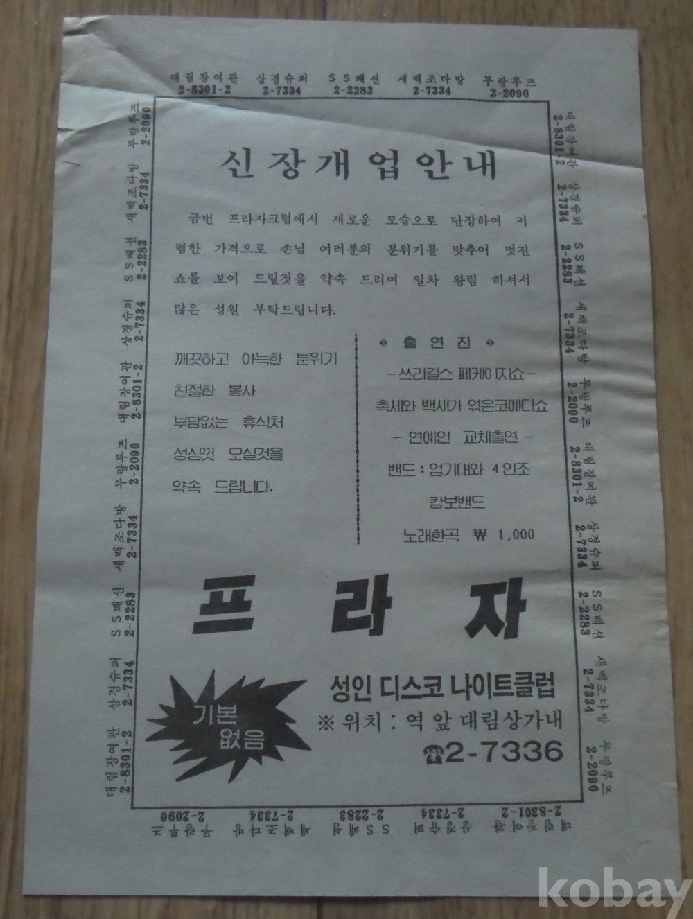 옛 전단지: 성인디스코 나이트클럽 프라자 신장개업(안동)
