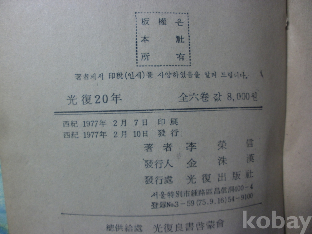 광복 20년 - 제3,4,5권 (3권일괄 (1977년, 이영신 저, 광복출판사)