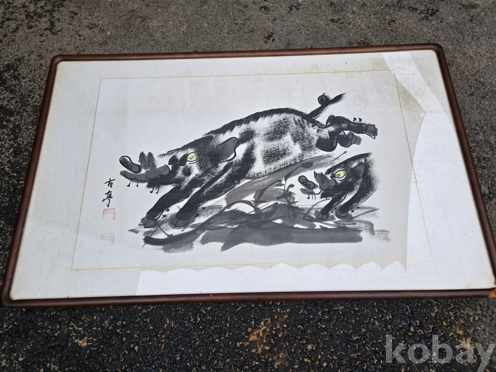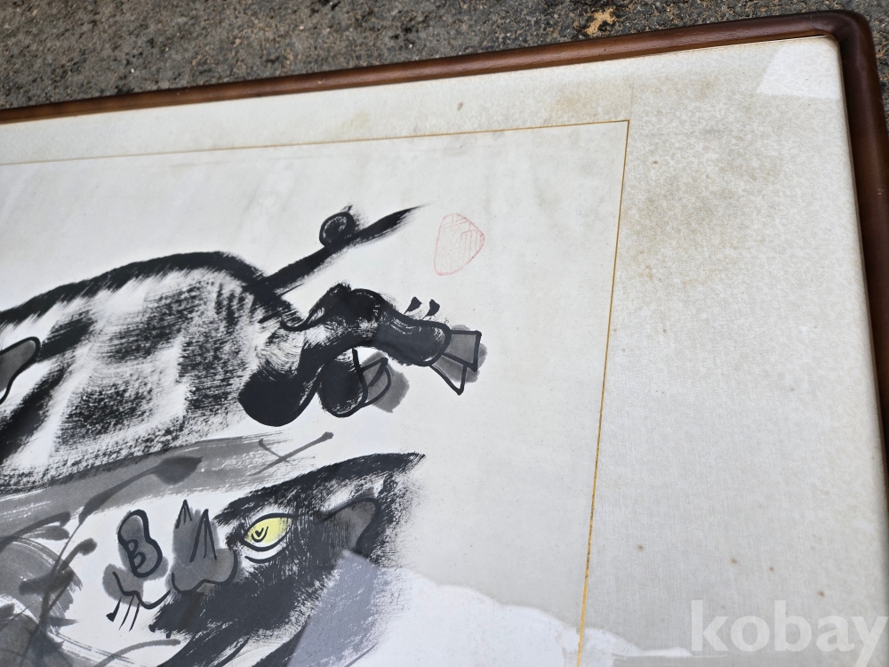 액자 모서리 깨짐과 안쪽에 오염이 있습니다.