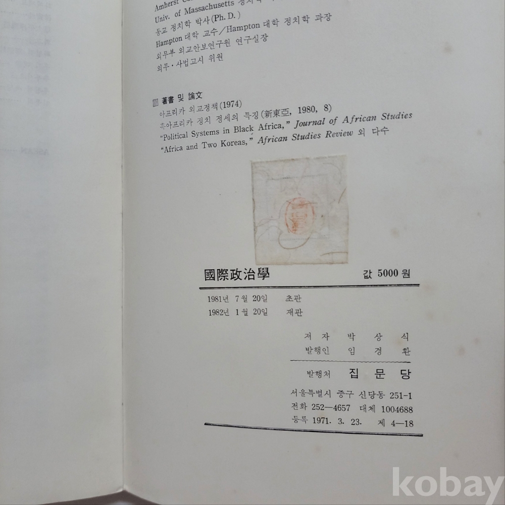 [천원경매] 1982년 집문당 발행 국제 정치학 도서