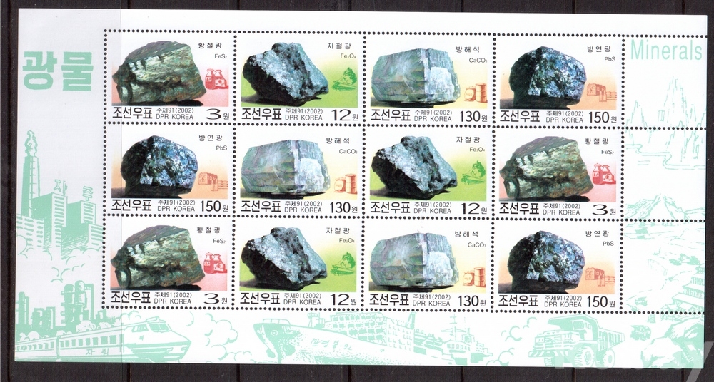 (광물) 북한 2002.10.25 광물 sheetlet of 12 MNH