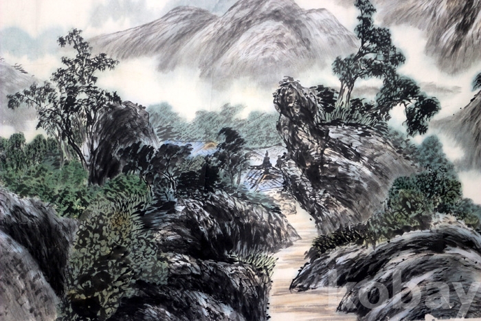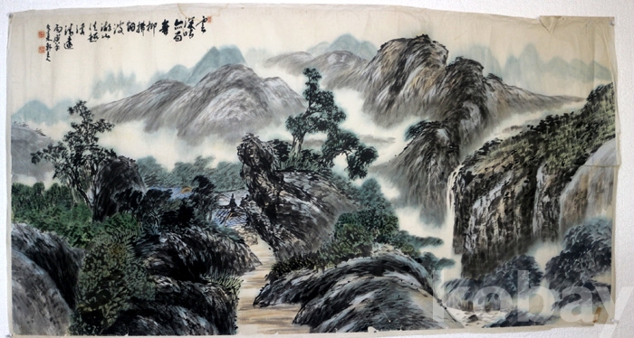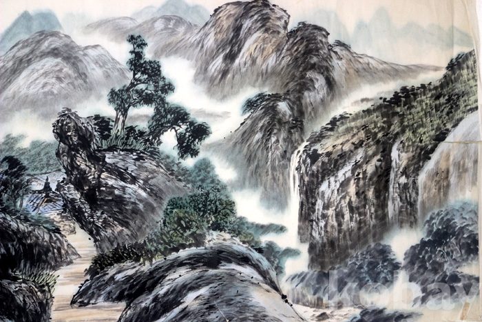 多來軒(다래헌) 정응균의 대형 전지작품 - 기와집이 있는 산골의 여름풍경