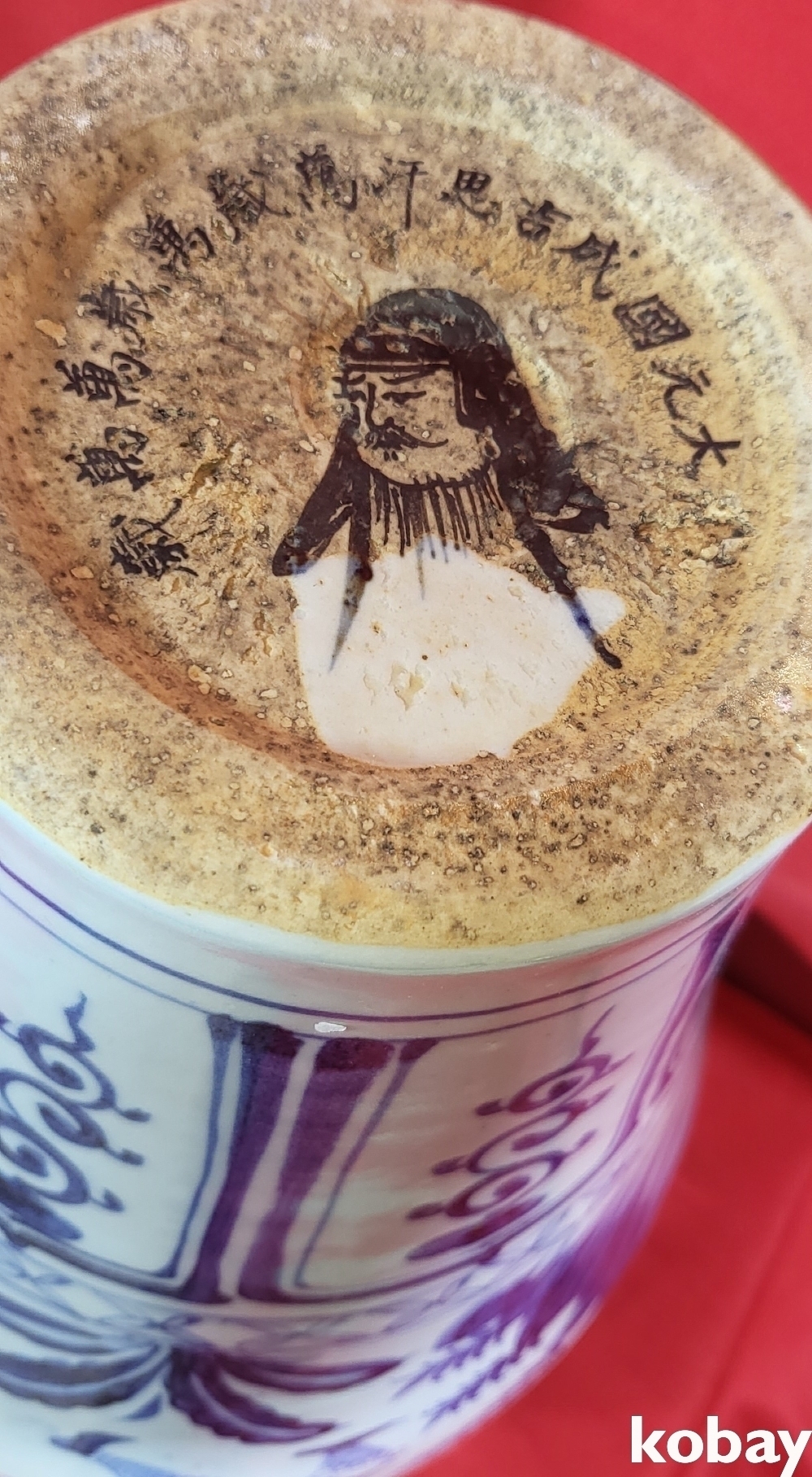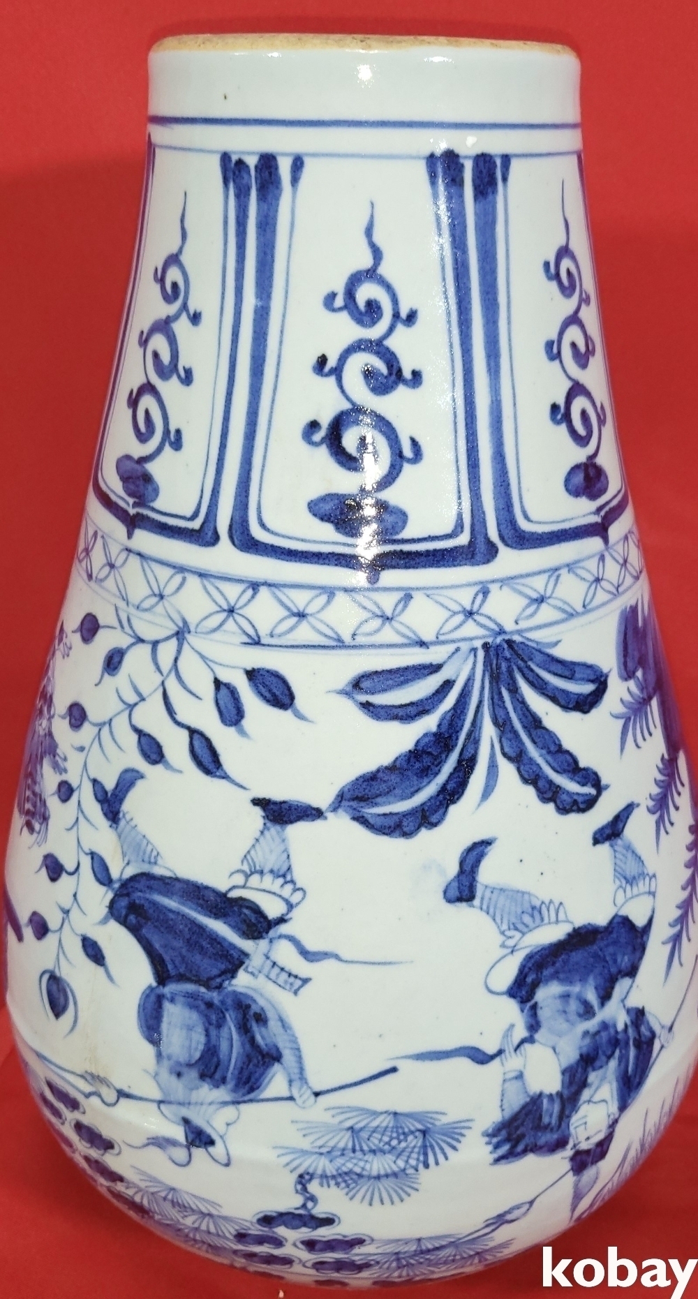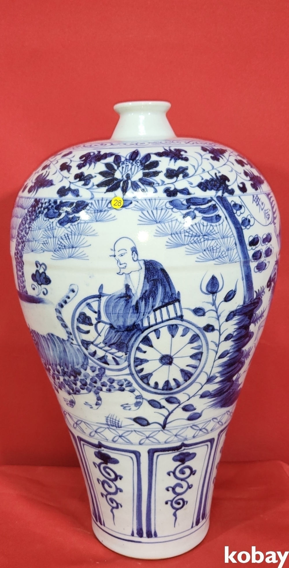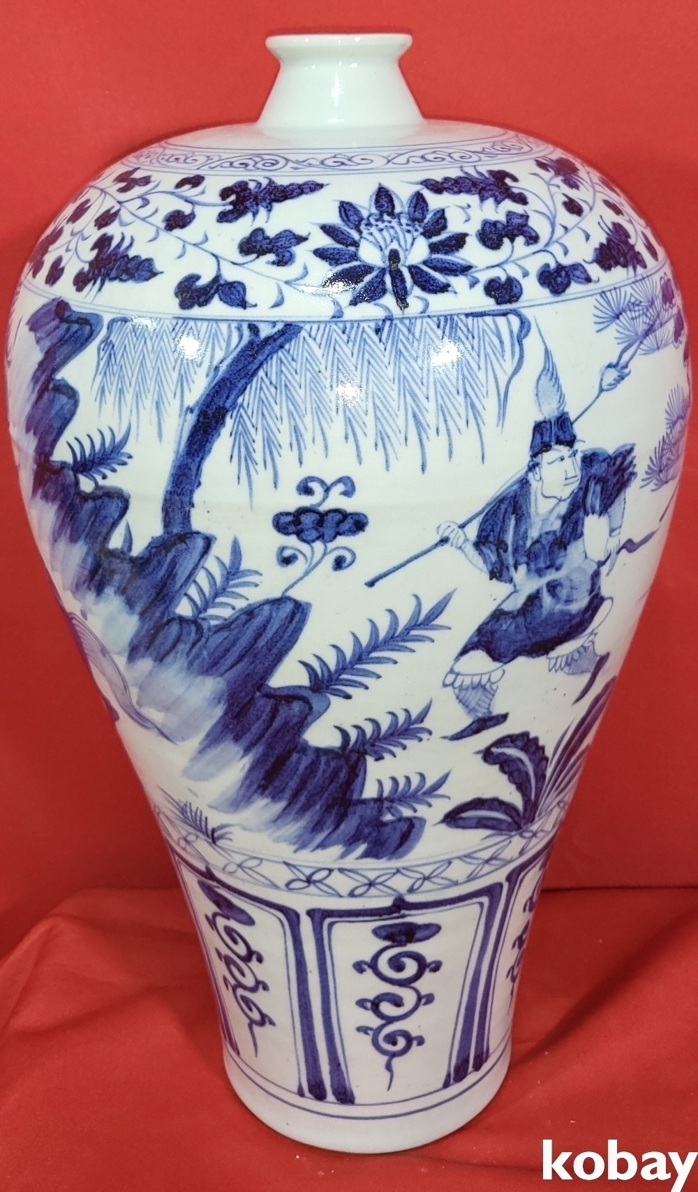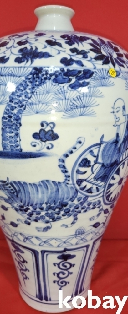 징기스칸 관지 청화백자 귀곡자 하산도 문양 매병입니다,