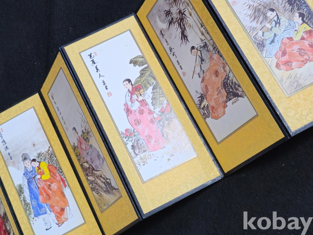 (((근현대사자료))) 오래전 韓國風俗繪畵圖 8폭미니병풍