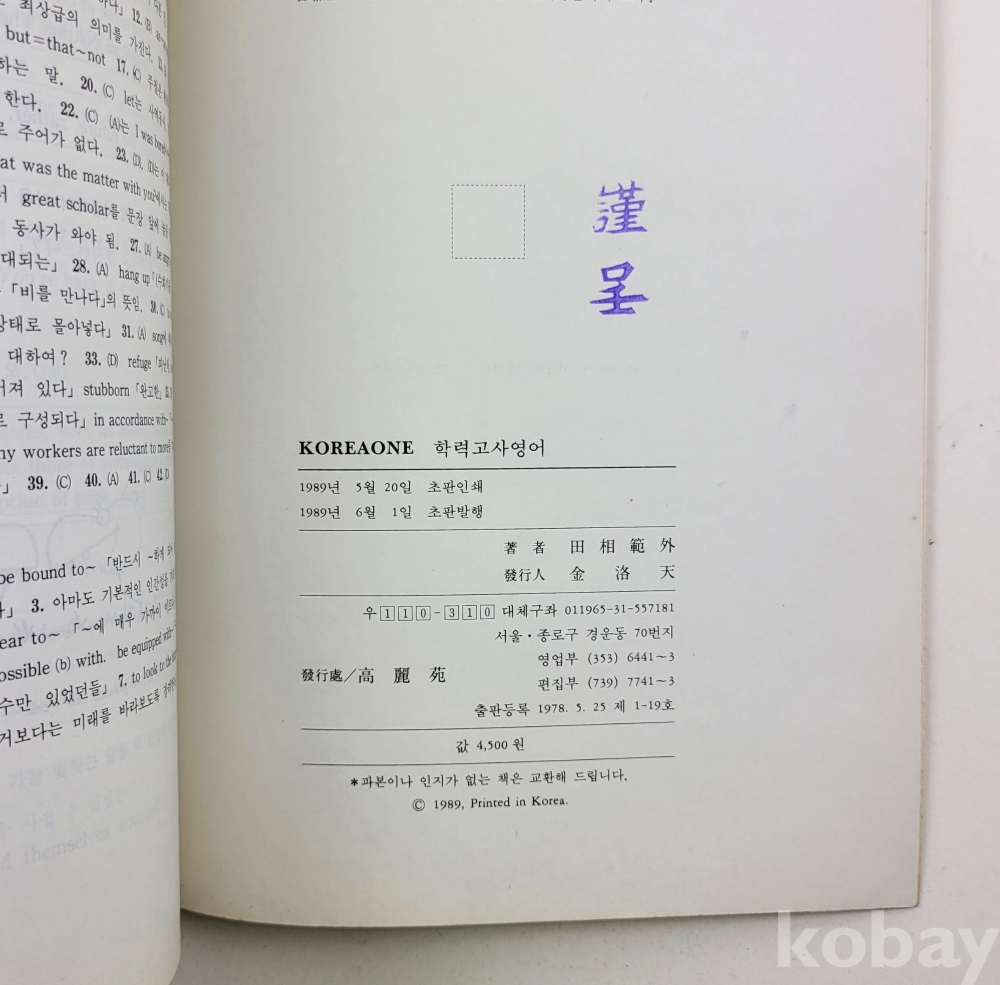 물 품 명 | KOREAONE : 학력고사 영어 / 1989년 초판 / 전상범 외 4인 / 고려원 |
