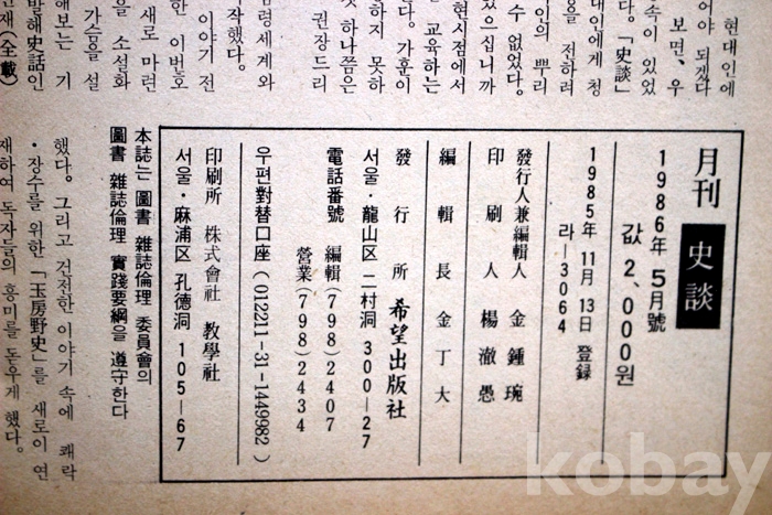 (월간지) 史談(사담) 1986년 5월호