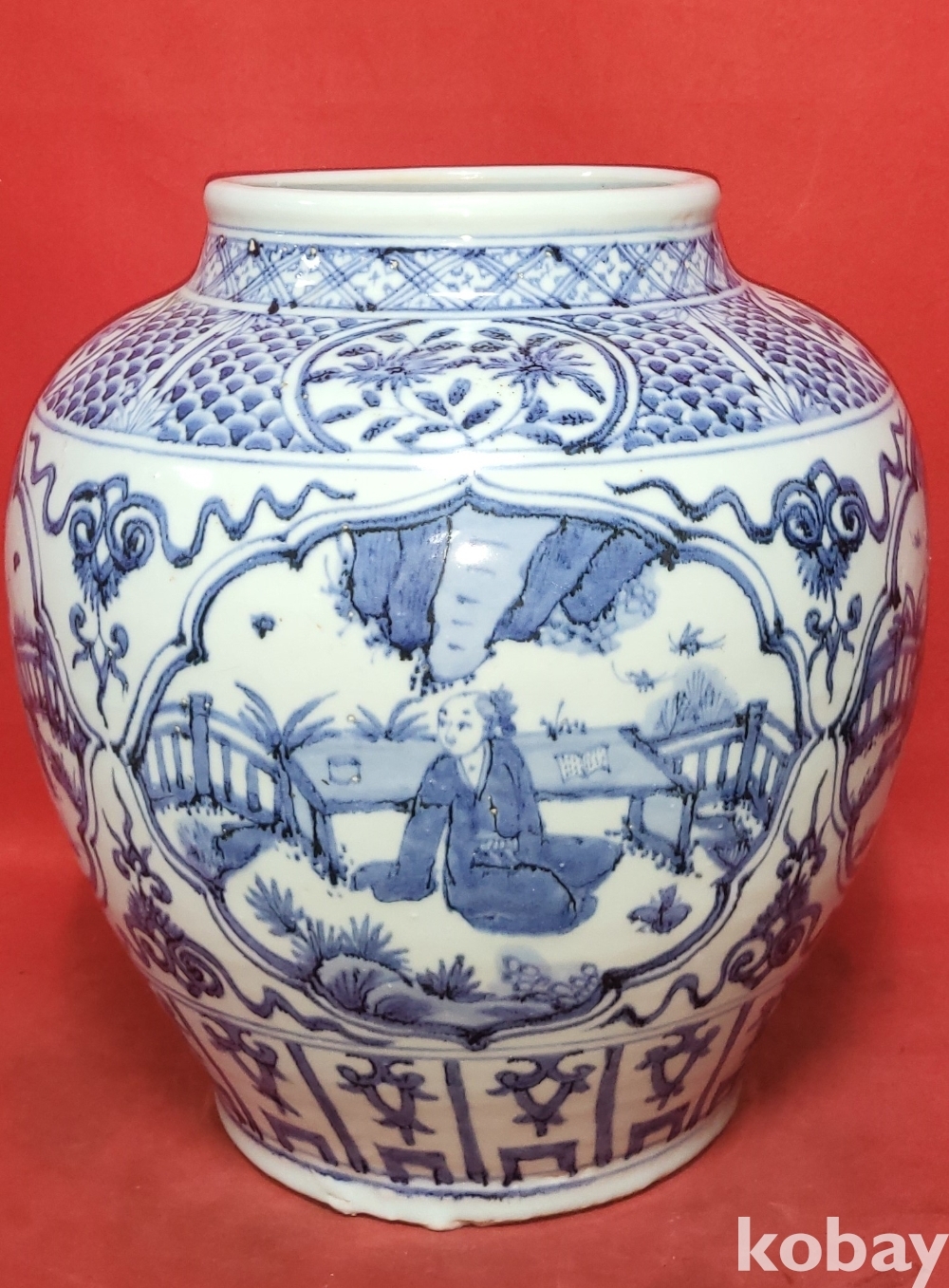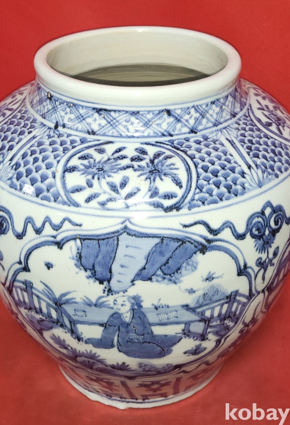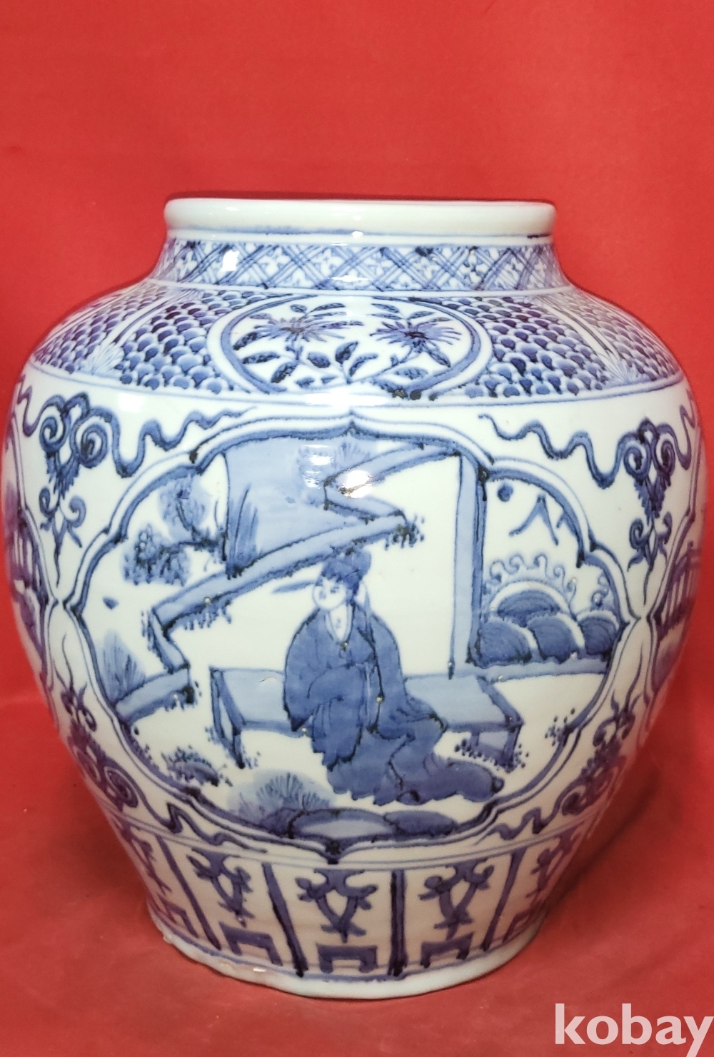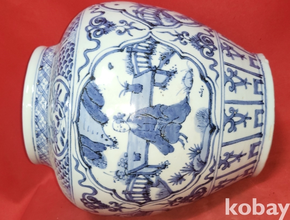 청나라 시대 청화백자 4개광 인물문양 항입니다,