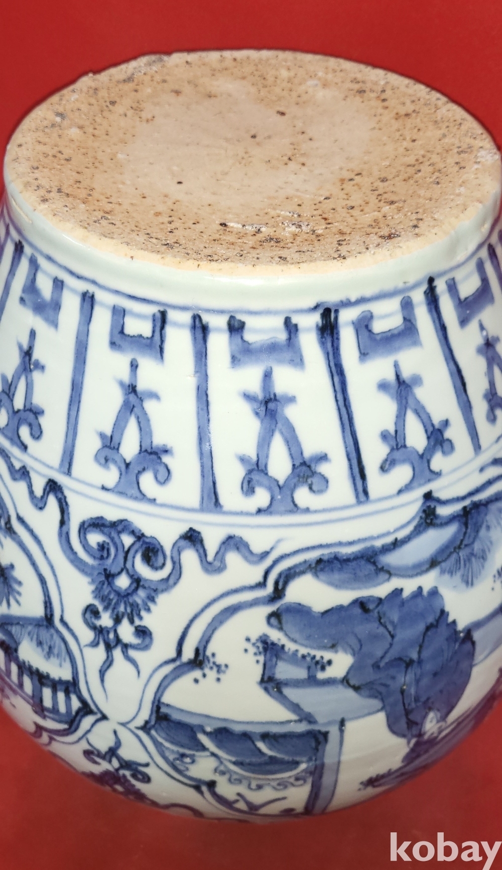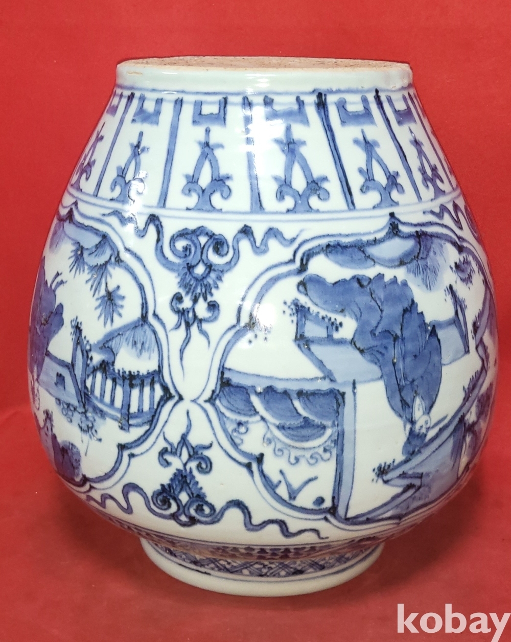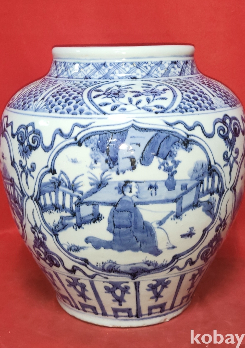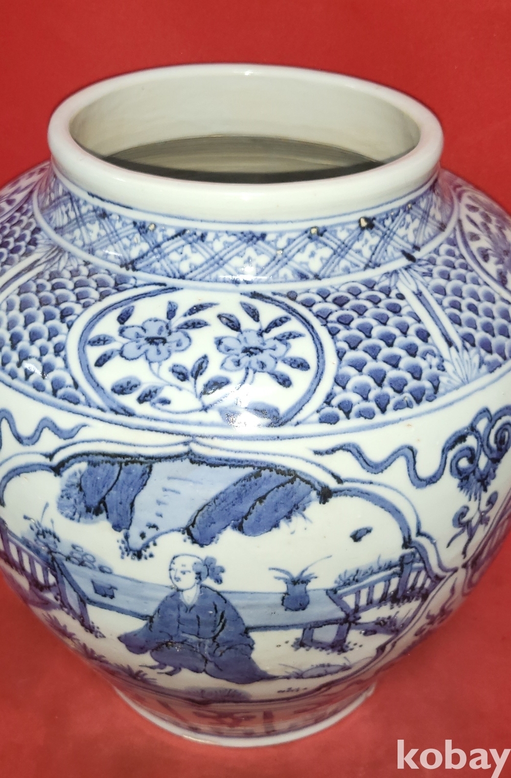 청나라 시대 청화백자 4개광 인물문양 항입니다,