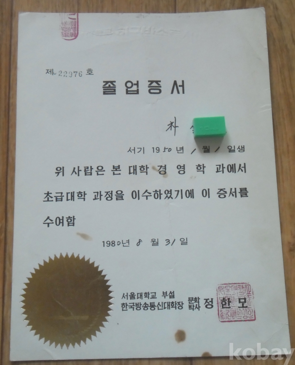 1980년 서울대부설 한국방송통신대 졸업증서