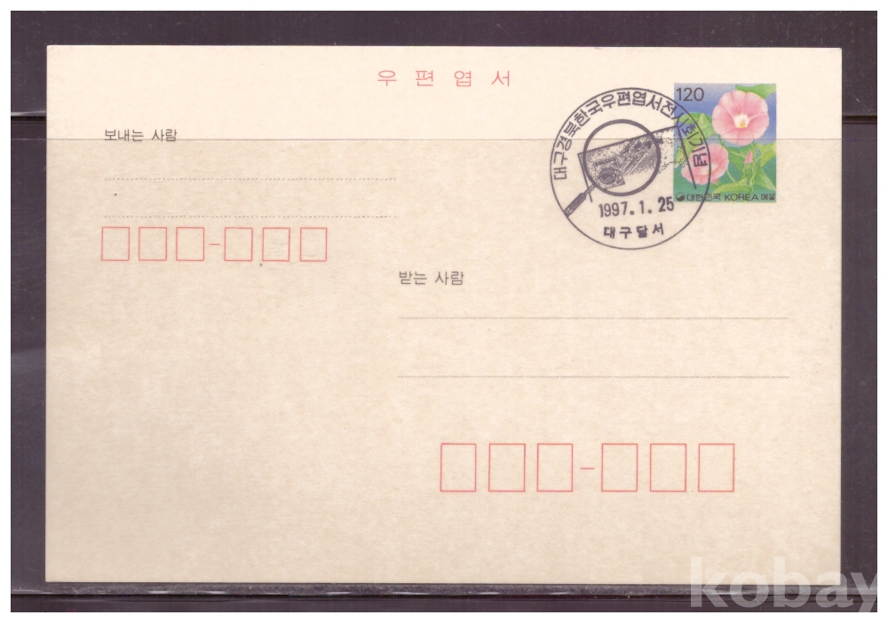 (기념일부인엽서) 1997.1.25 대구경북한국우편엽서전시회기념*돋보기로 본 우편엽서 (대구달서)