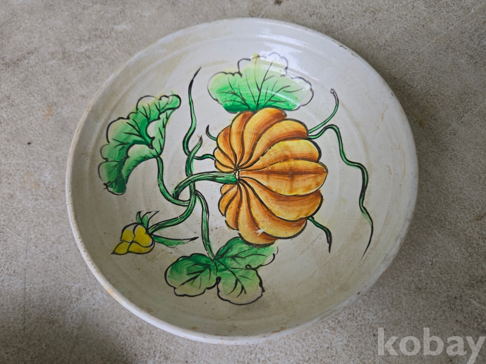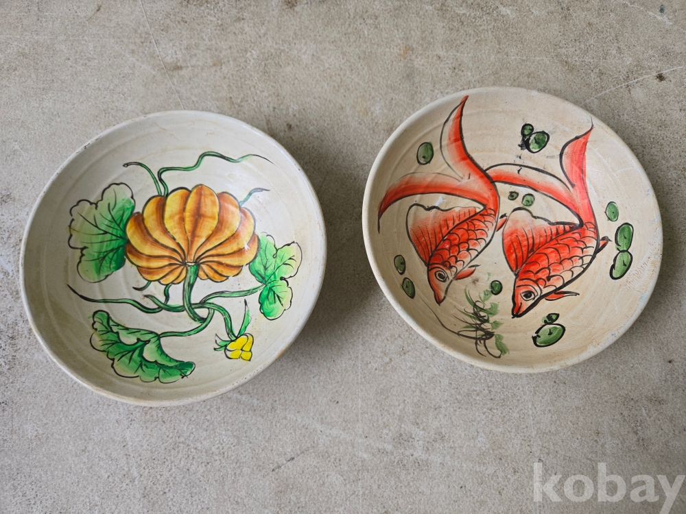 호박과 물고기 그림 도자기 접시 2개 입니다.