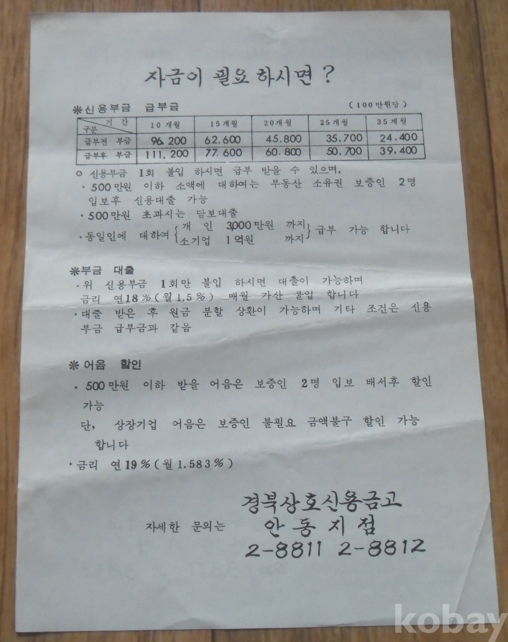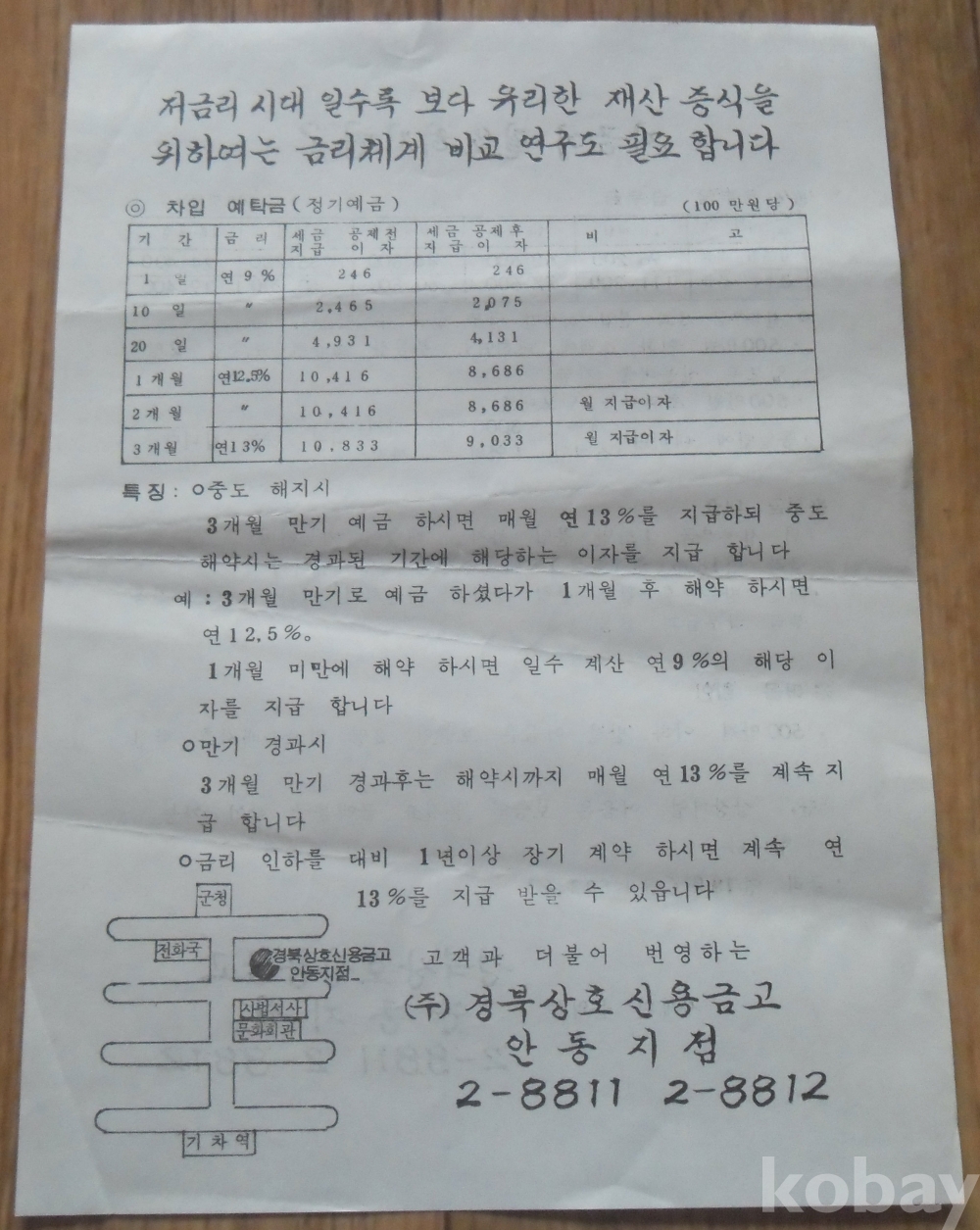 옛 전단지: 경북상호신용금고 안동지점(안동)