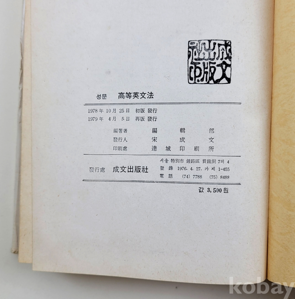 물 품 명 | 성문 고등영문법 / 1979년 / 성문출판사 편집부 |