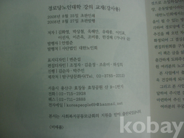 경로당 노인대학 강의교재 - 강사용 (2008년, 대한노인회)