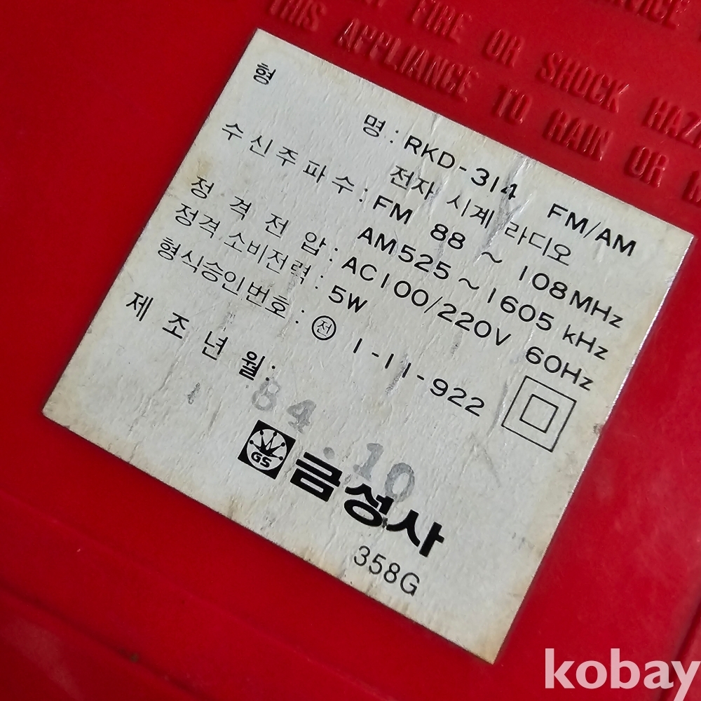 (((근현대사/금성사자료))) 40년전 Goldstar AM/FM 2 BAND DIGITAL CLOCK RADIO (RKD - 314)