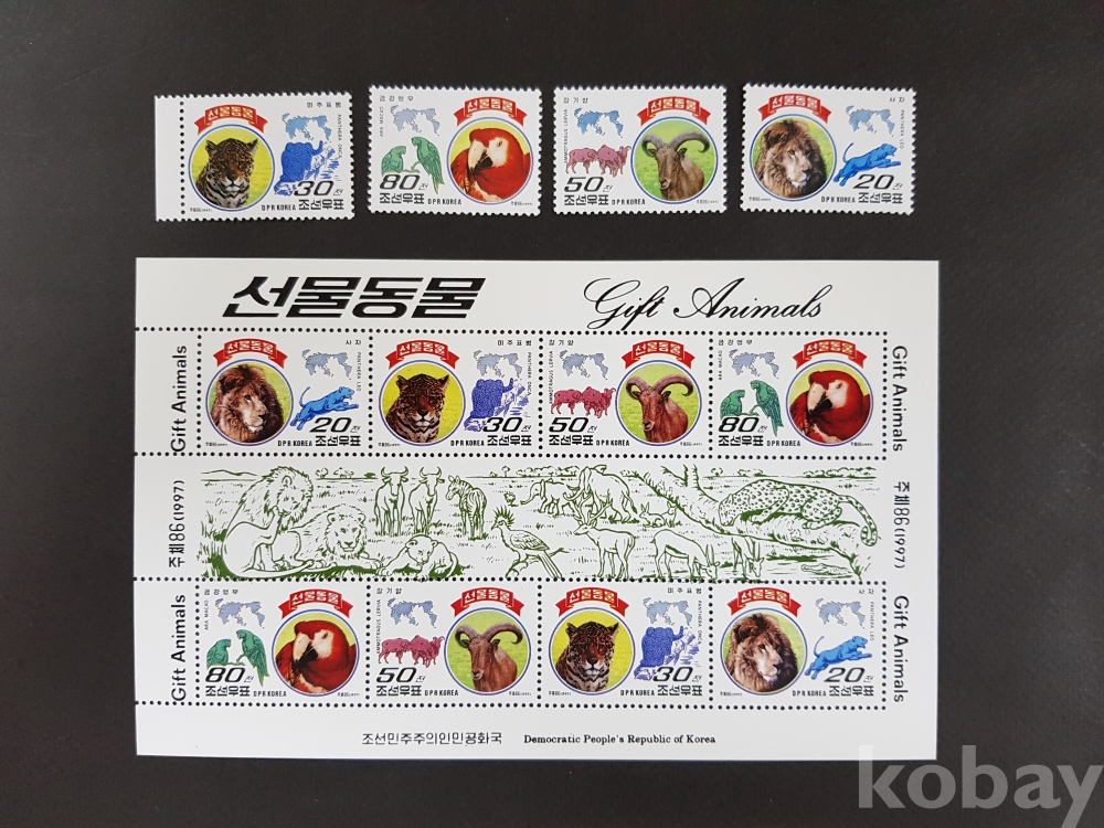 **** 조선우표 - 선물동물 사자 등