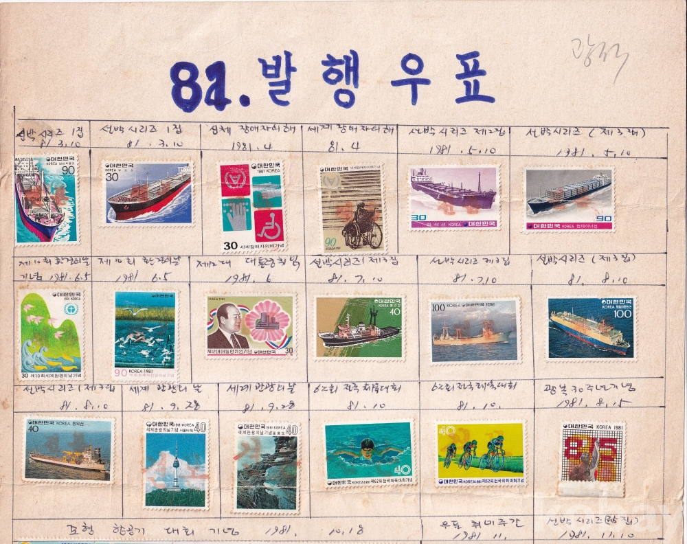 -희귀- 1981년 발행 우표 견본 우표-51장