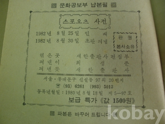정석 사전 (1974년, 흠목위차랑 등, 풍성각)