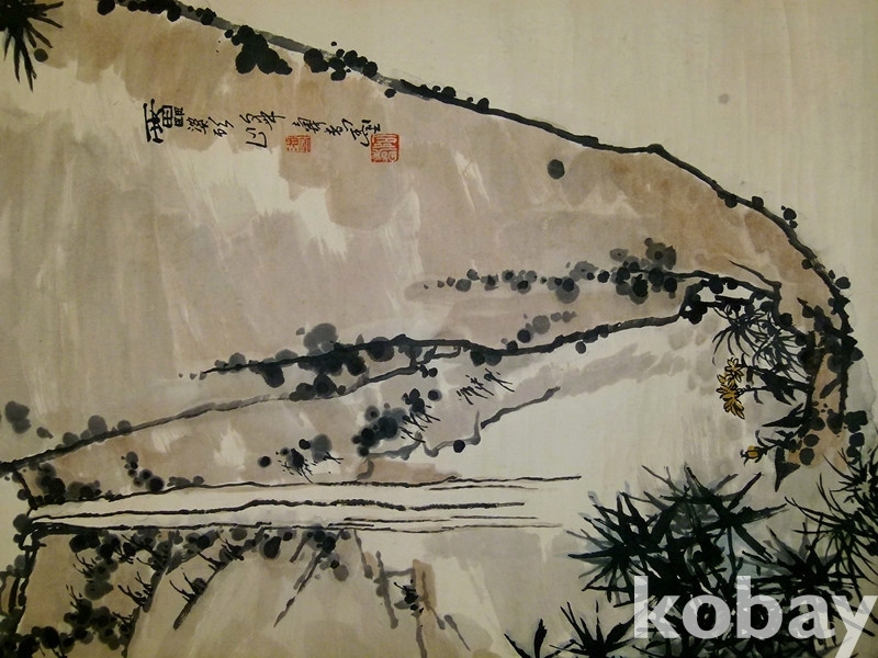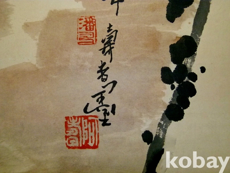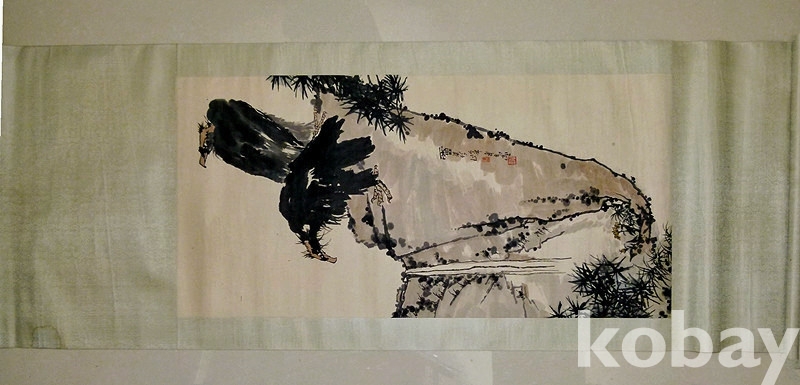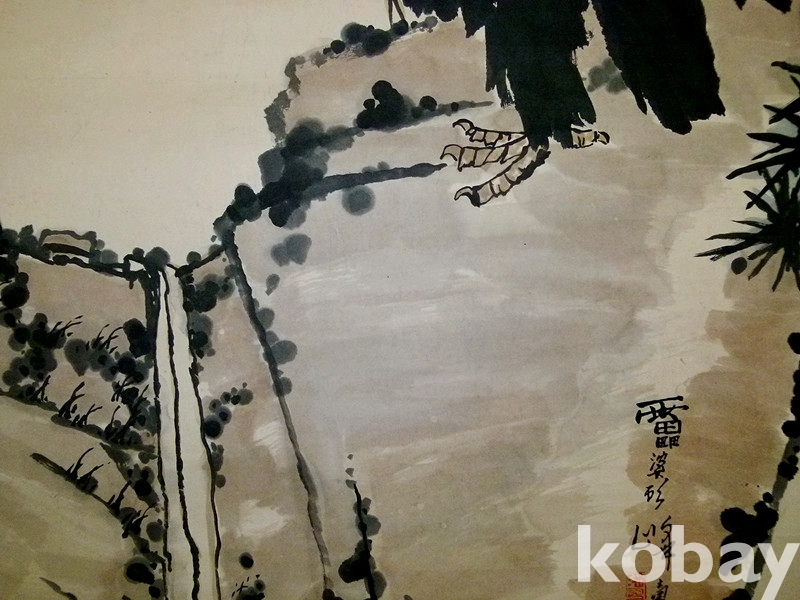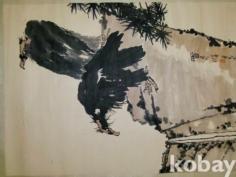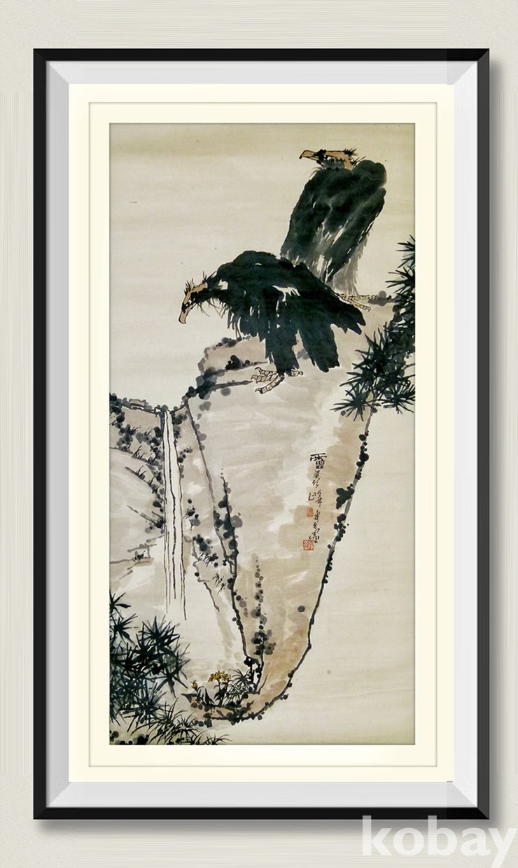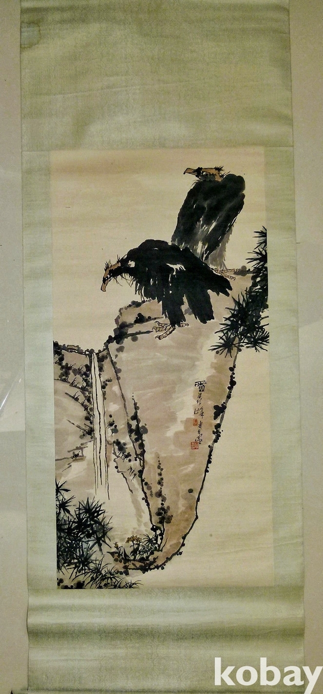 중국화거장 반천수(潘天寿) 1960년대 대폭 사의영모도 쌍조도(雙鵰圖)