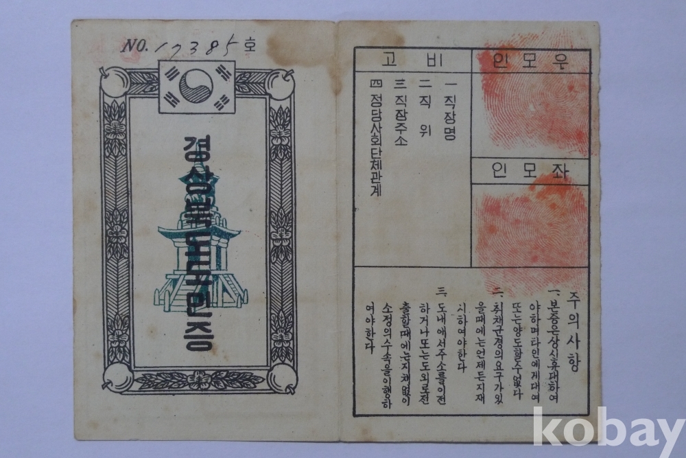 1958년 경상북도 도민증