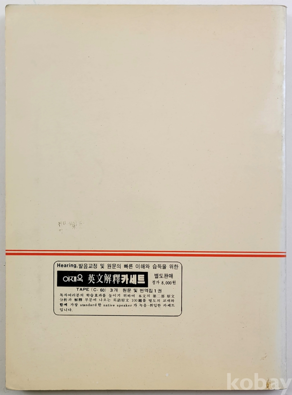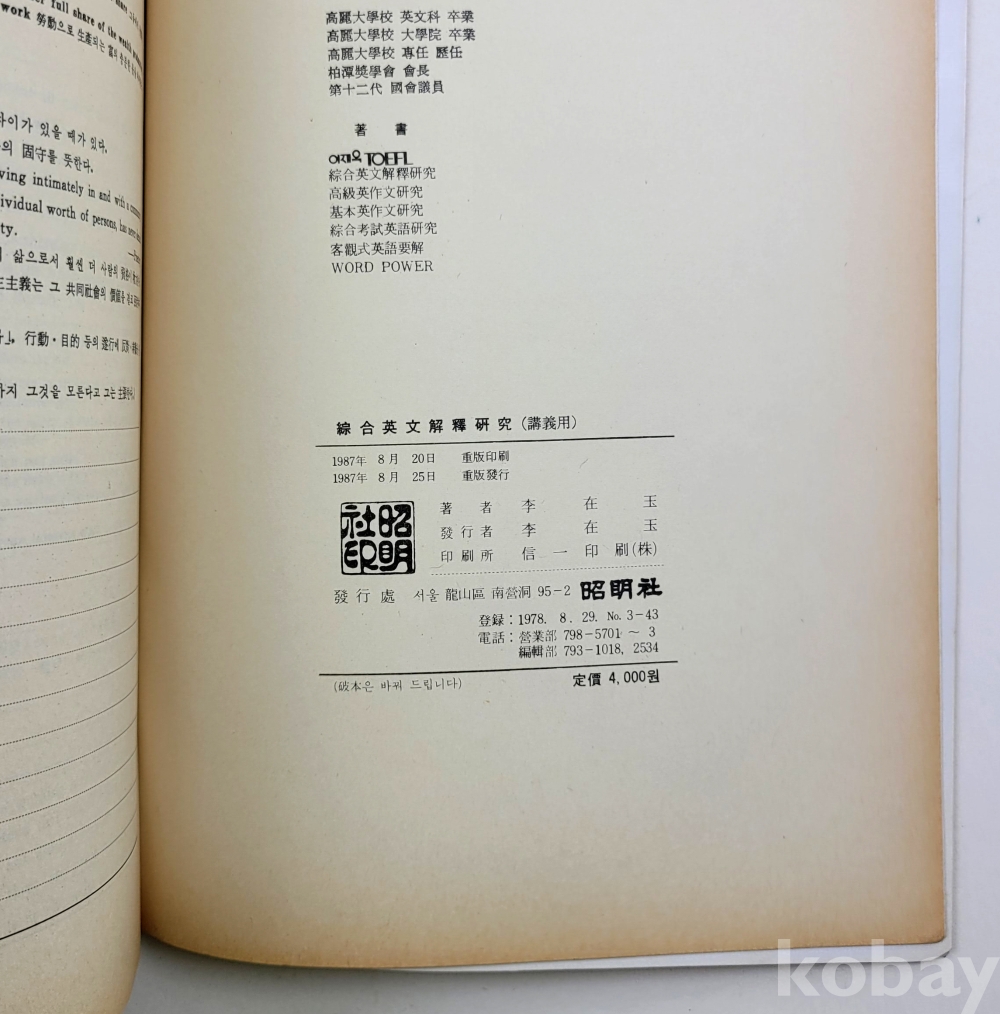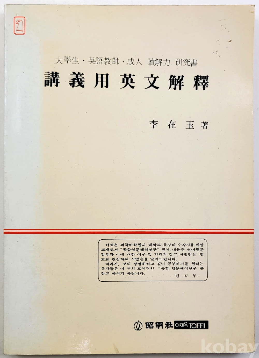 물 품 명 | 강의용 영문해석 / 대학생, 영어교사, 성인 독해력 연구서 / 1987년 / 이재옥 / 소명사 |
