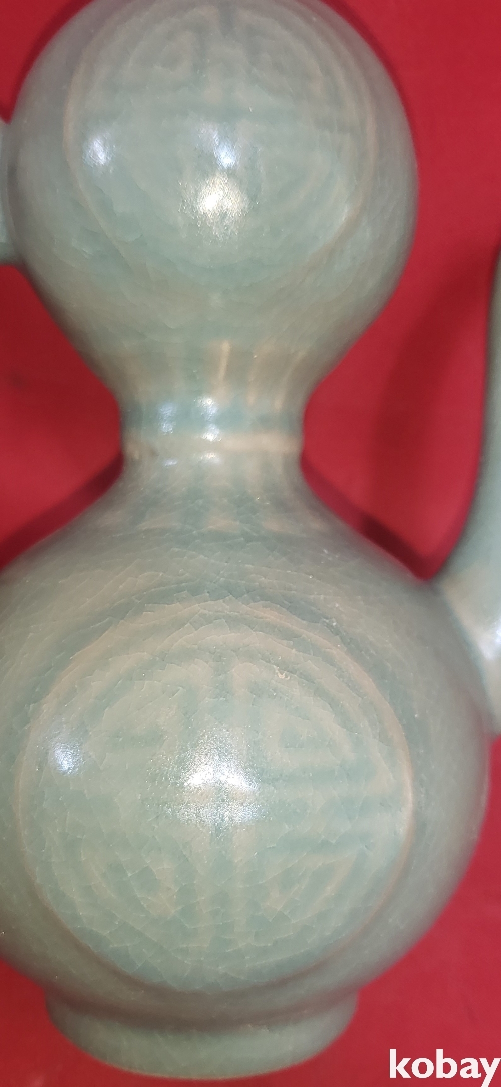 비색청자 양면에 문자문양 호리형 주전자입니다,