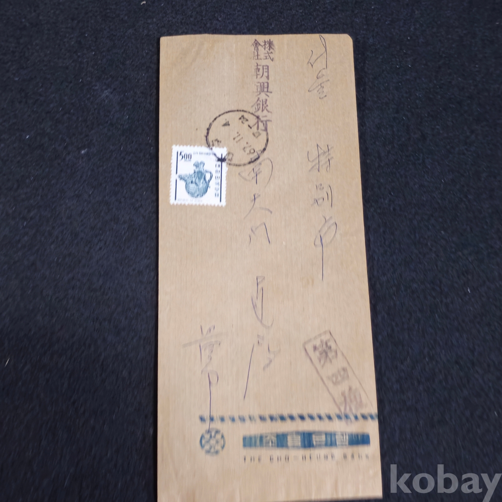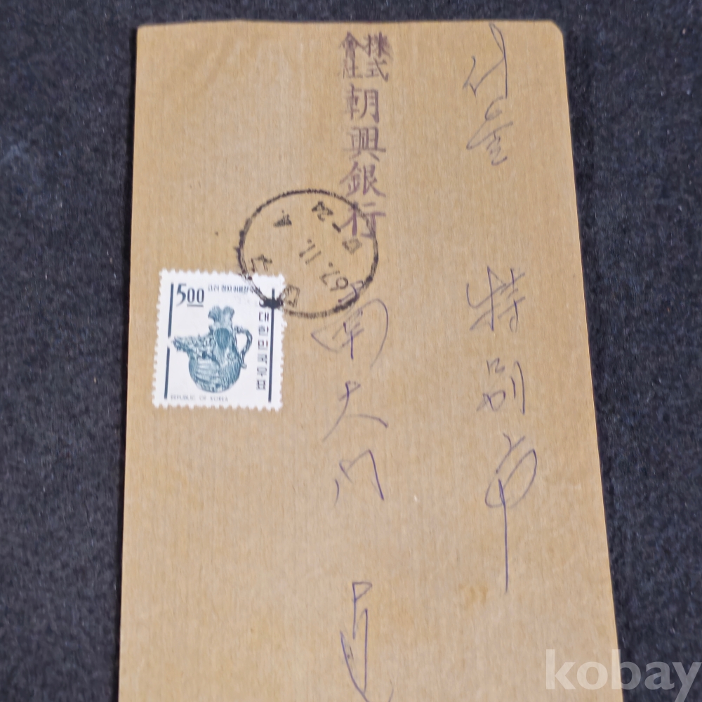 (((우취자료/은행자료/근현대사자료))) 조흥은행에서 발송한 1967년 (고려청자어룡형 수병 5원) 소인찍인 실체봉투