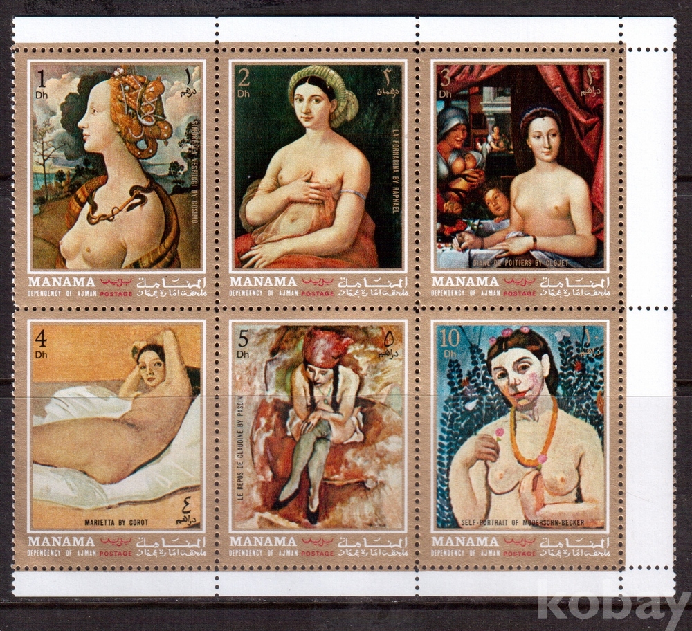 (누드명화) Manama (마나마) 코지모외 누드화 sheet of 6 MNH