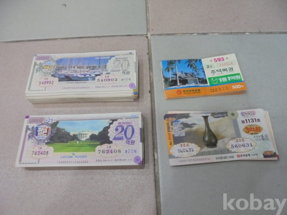 주택복권 1등 1억원 89년도전후 70여장 팝콘 주입식복권 2007년전후 20억원 280여장 전부깨끗이 보관된 복권 350 여장