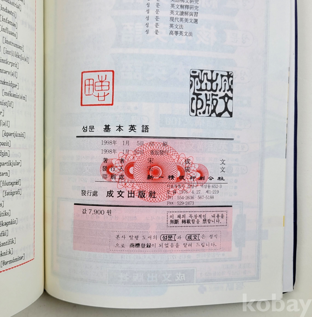 물 품 명 | 성문 기본영어 ⦁ 학습서 총 2종 / 1998년 / 송성문, 최선식 / 성문출판사, 세왕 |