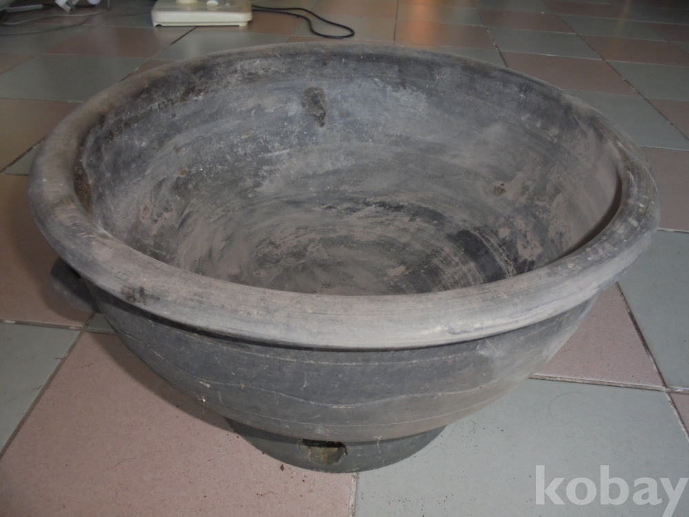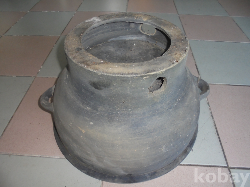 옛날화로가 필수품인시절에 두텁고 무겁게 모양바르게 잘만든 사용하여 불을맞아도 용케도 잘보존된 두텁고 무거운 귀한 오지 화로