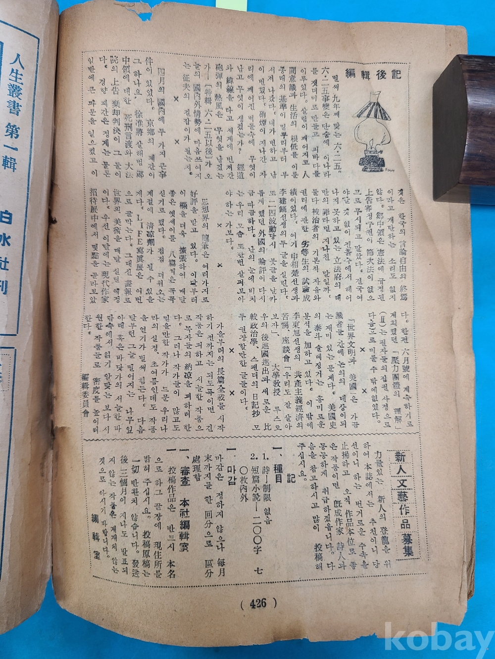 金八峰(김기진)의 글 “韓國新聞受難史(1)”가 실린 思想界*1959년 6월호 1959년6월1일. 사상계사. 426쪽