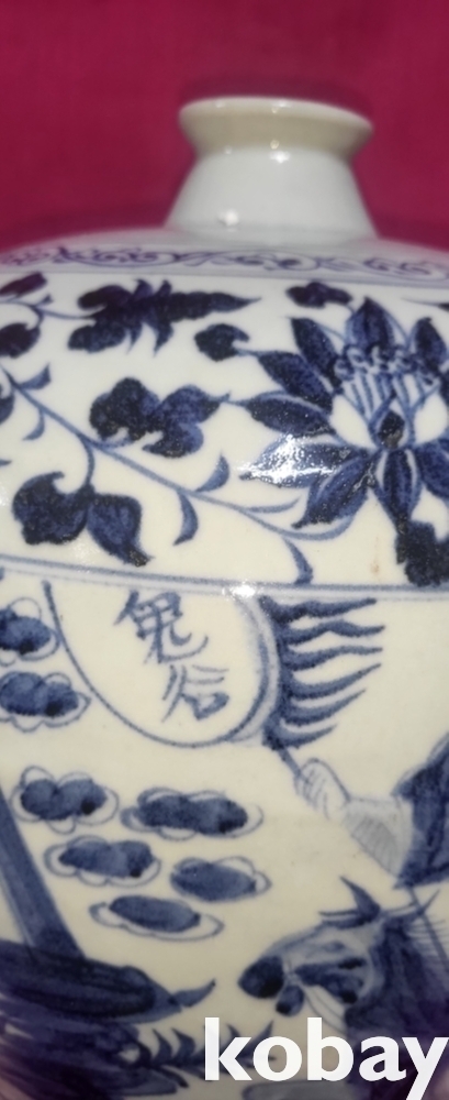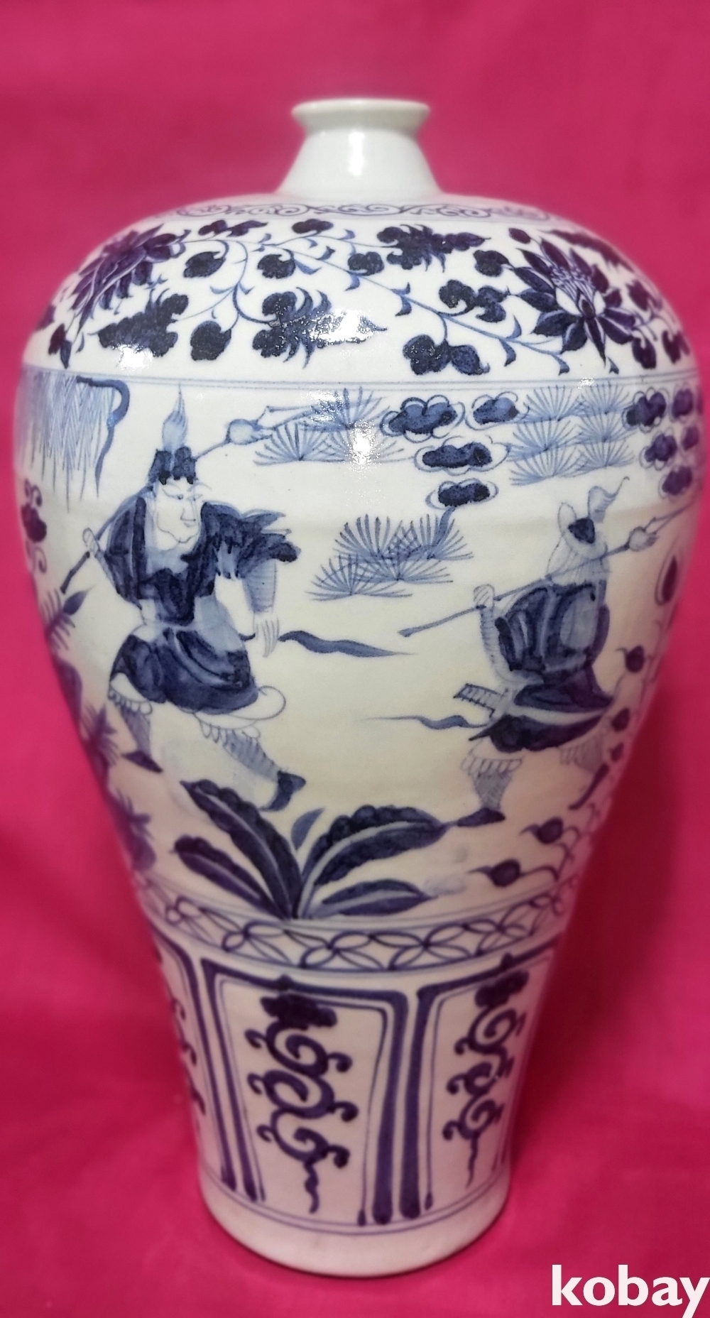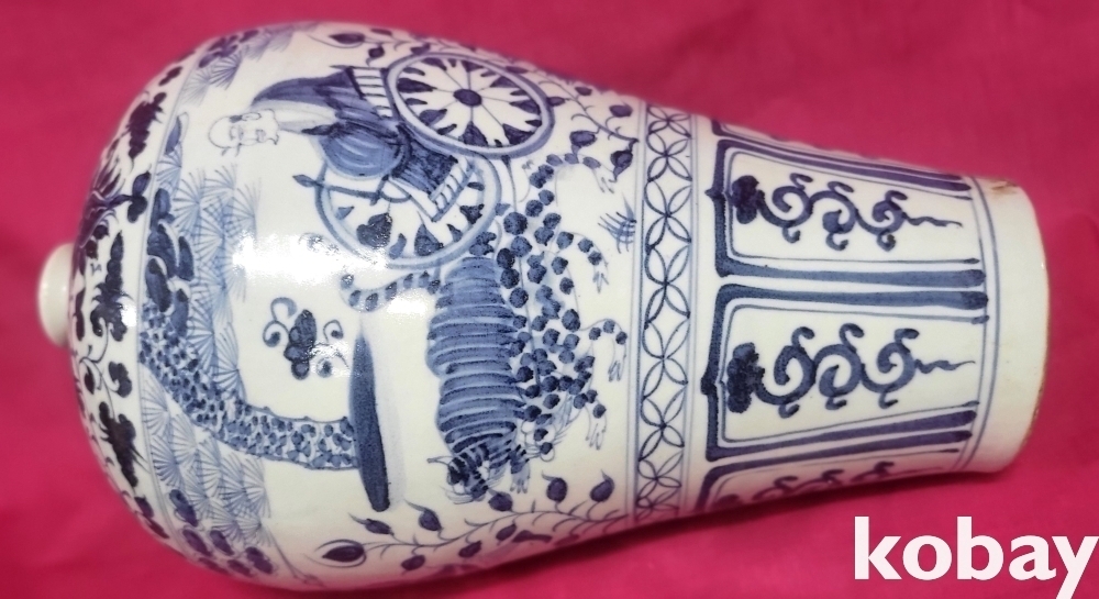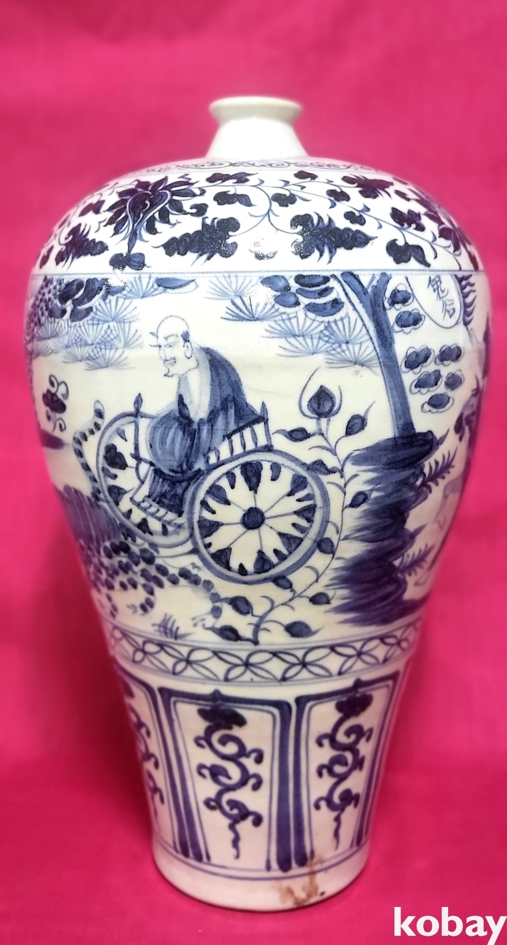 징기스칸 관지 청화백자 귀곡자 하산도 문양 큰 매병입니다,
