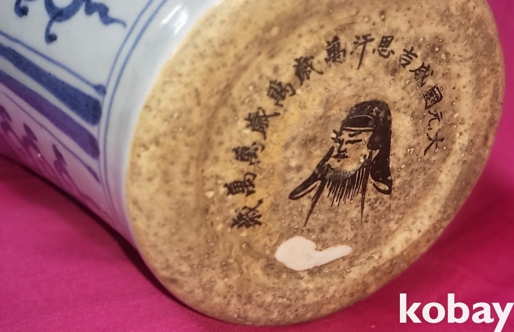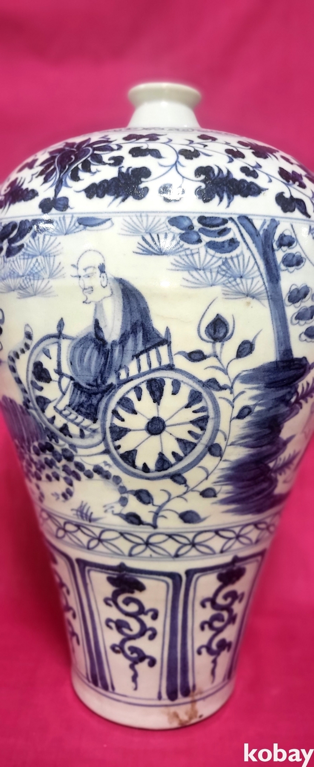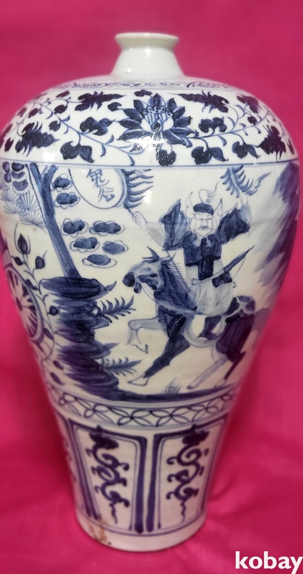 징기스칸 관지 청화백자 귀곡자 하산도 문양 큰 매병입니다,