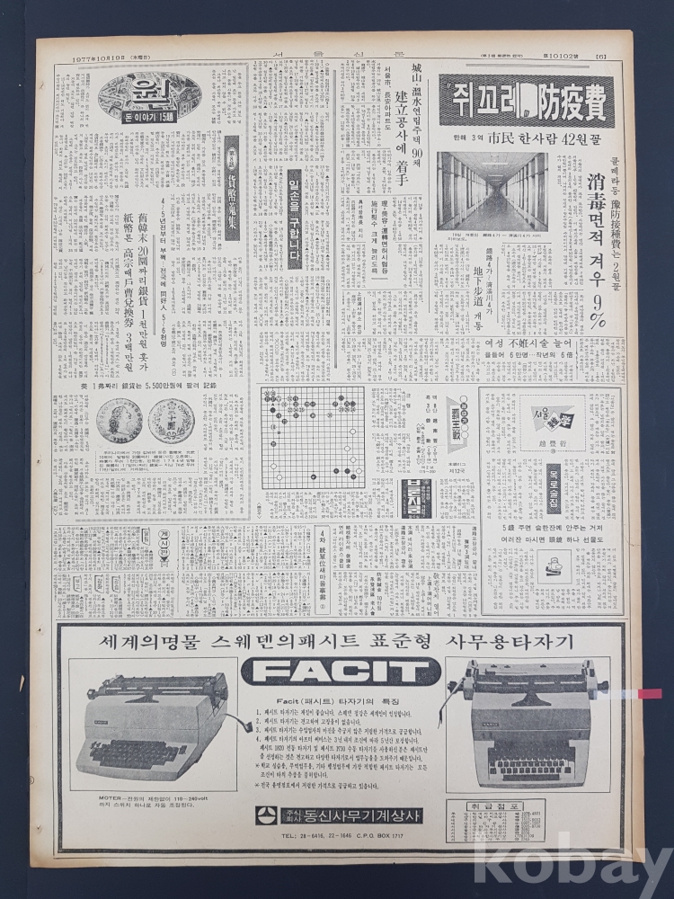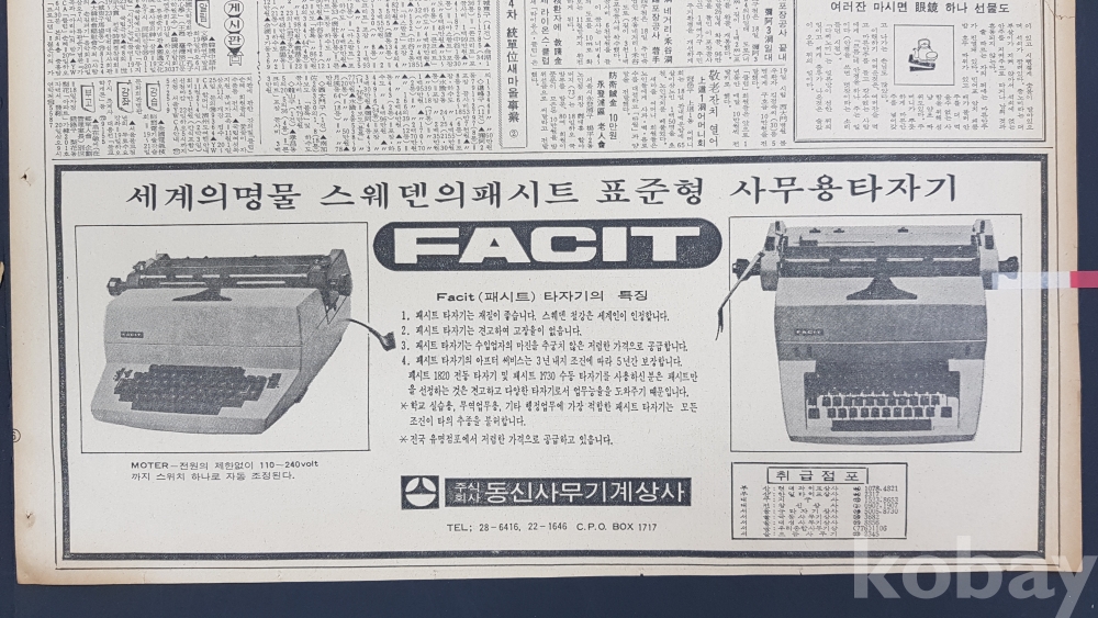**** 서울신문/1977년 10월 19일/4면*세계의명물 스웨덴의패시트 표준형 사무용 타자기 주식회사 동신사무기계상사