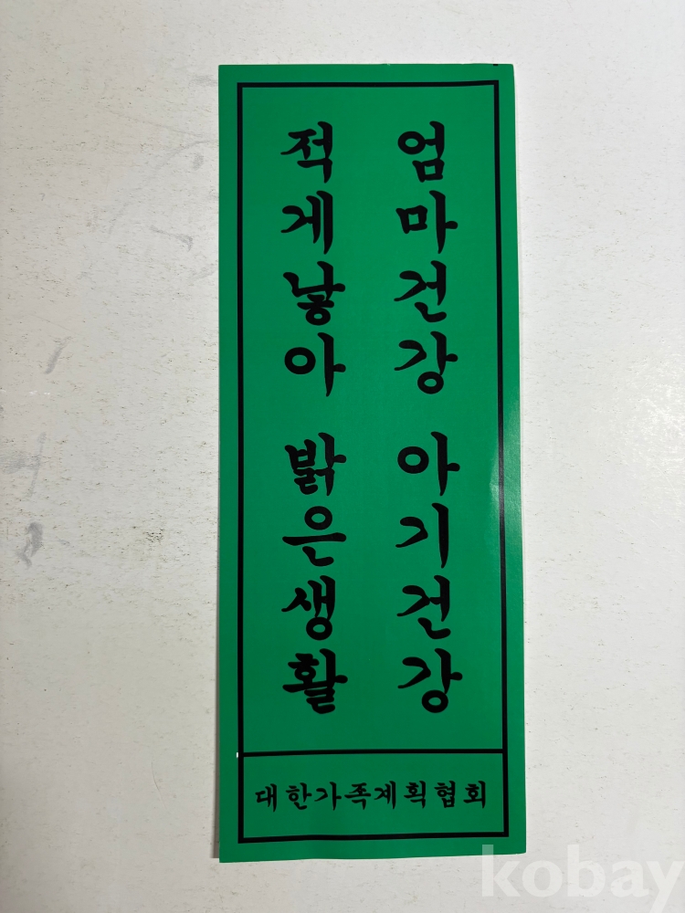 엄마건강 아기건강 적게낳아 밝은생활(진한 녹색) - 발행처(대한가족계획협회), 1980년대
