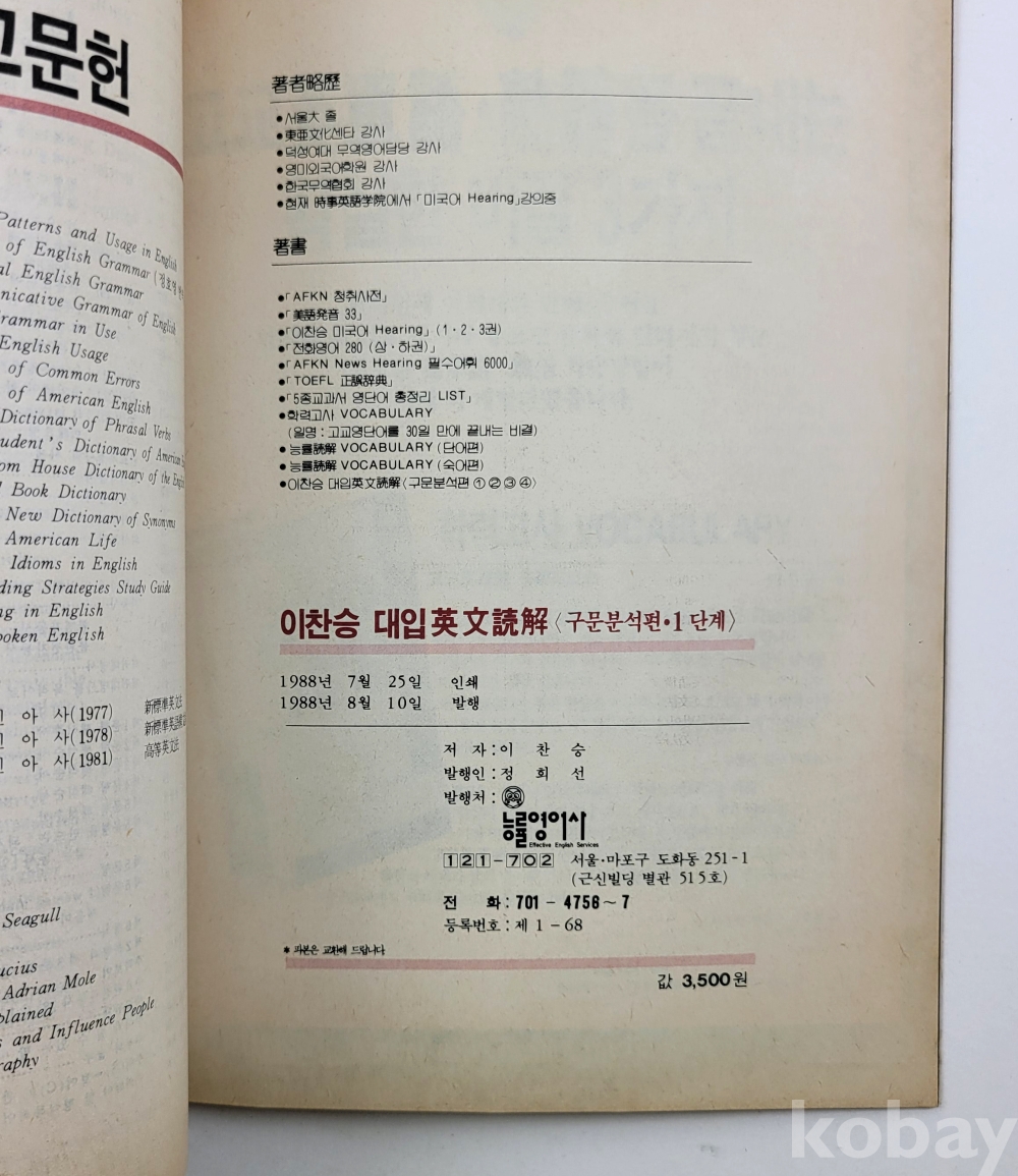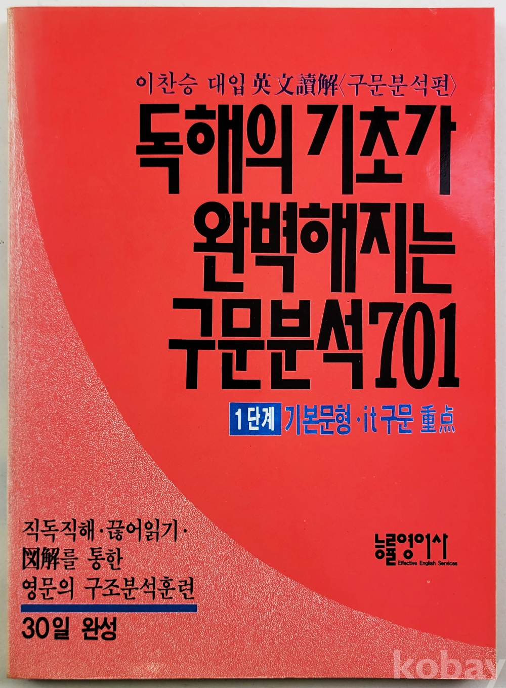 물 품 명 | 이찬승 : 독해의 기초가 완벽해지는 구문분석 701 - 1단계 (기본문형 ⦁ it구문 중점) / 1988년 초판 / 능률영어사 |