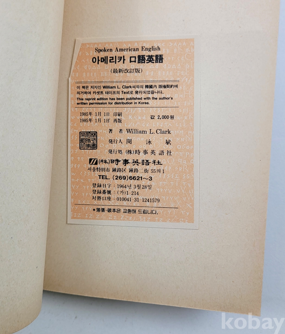 물 품 명 | 아메리카 구어 영어 4권(1)입문편(2)초급편(3)중급편(4)고급편 ⦁ (5)카세트테잎(3개입) 총 5종 / 윌리암 L. 클락 / 시사영어사 |