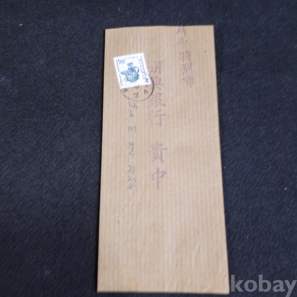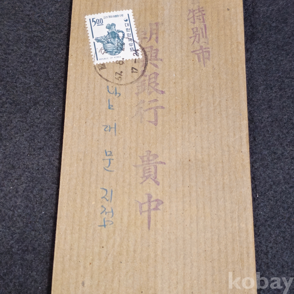 (((우취자료/은행자료/근현대사자료))) 제일은행제주지점에서 발송한 1967년 (고려청자어룡형 수병 5원) 소인찍인 실체봉투