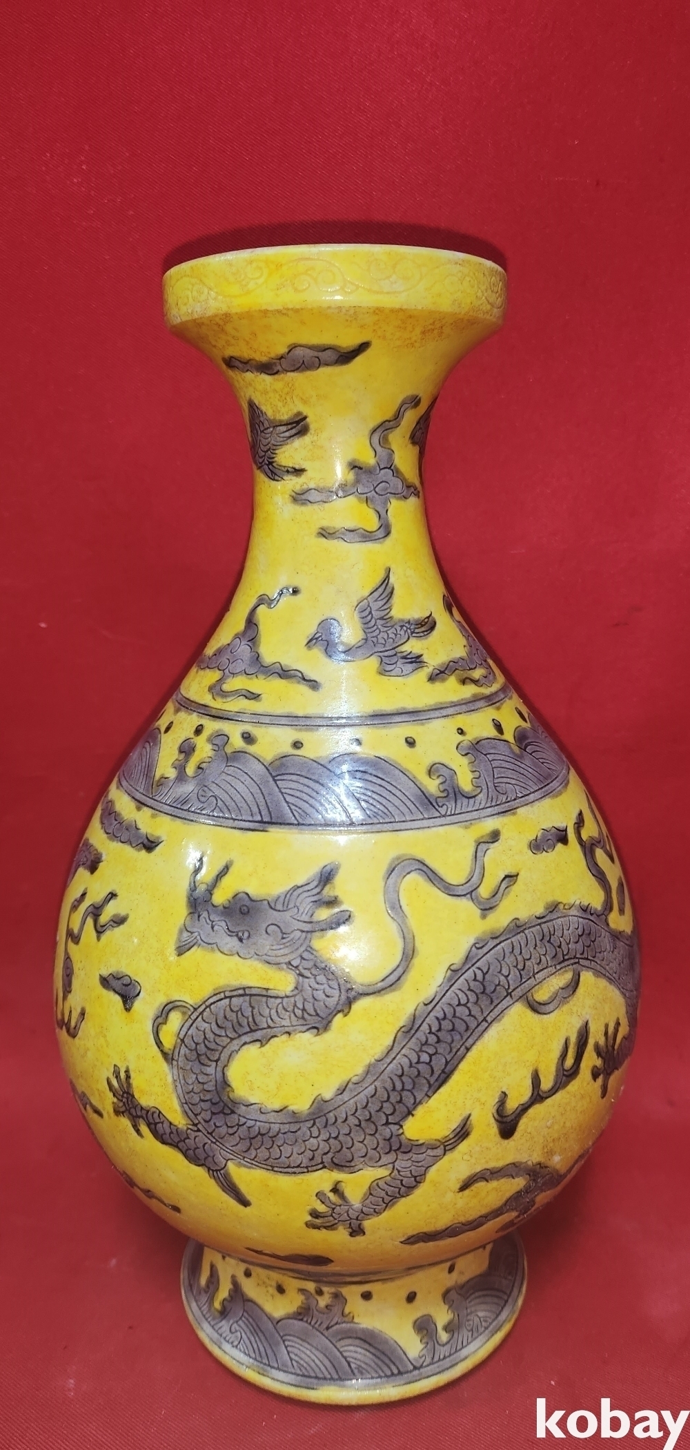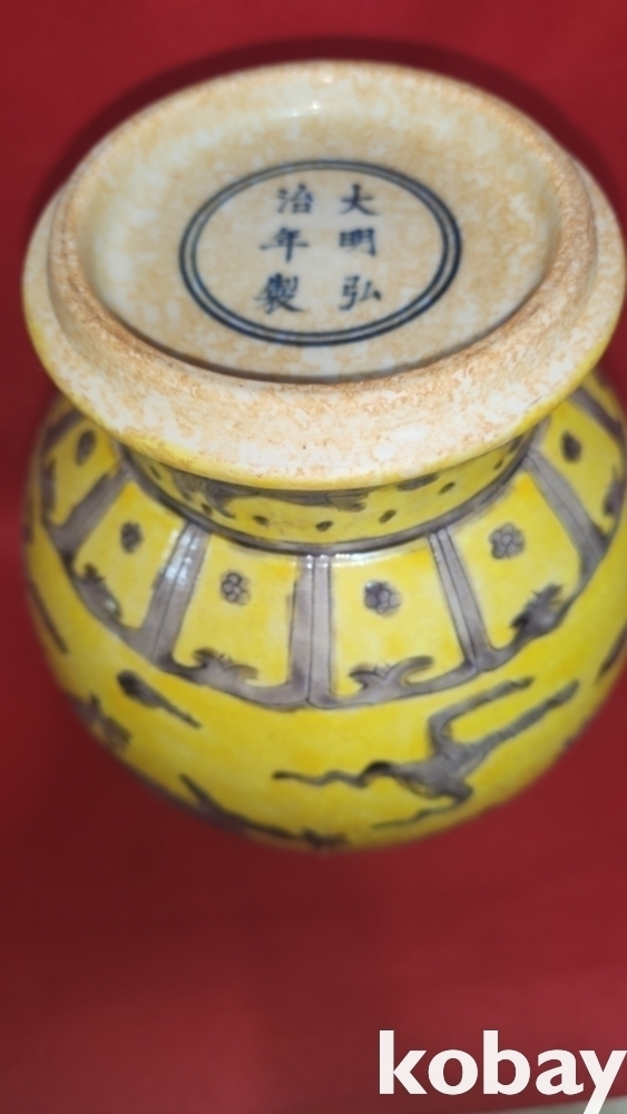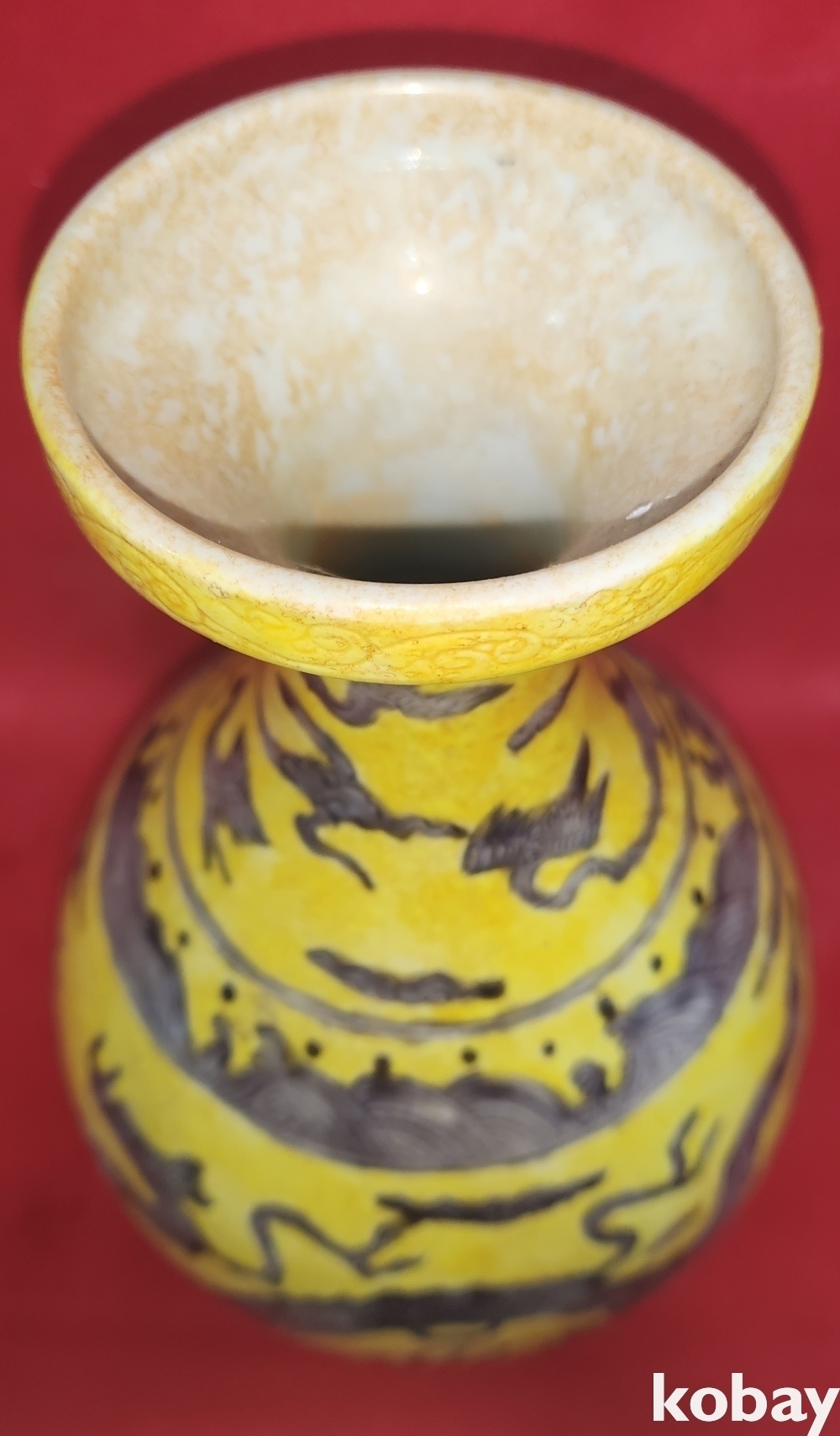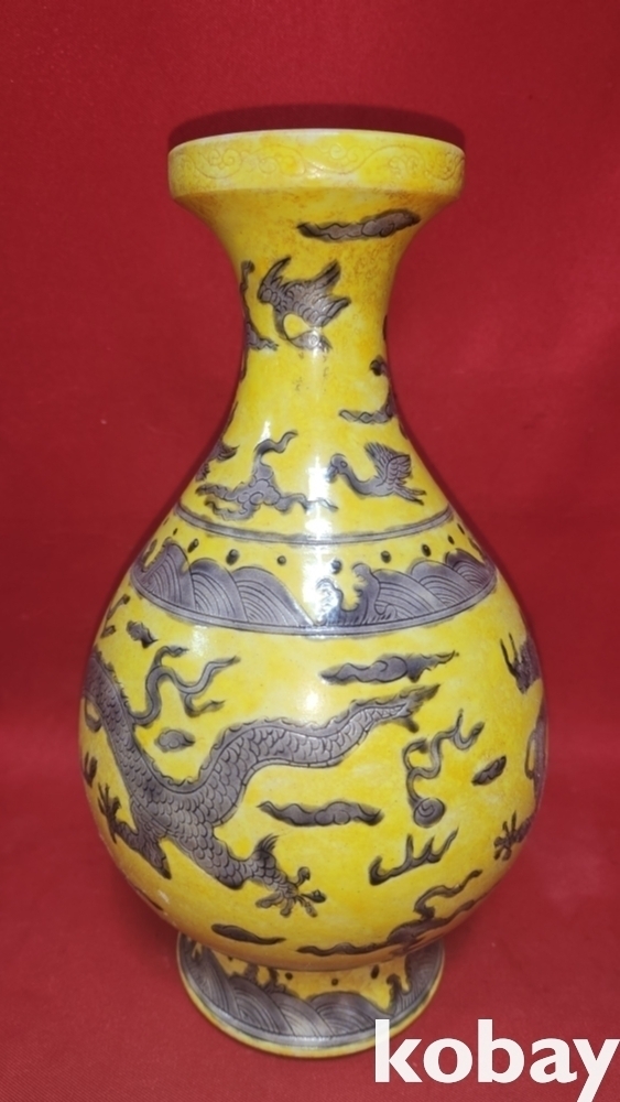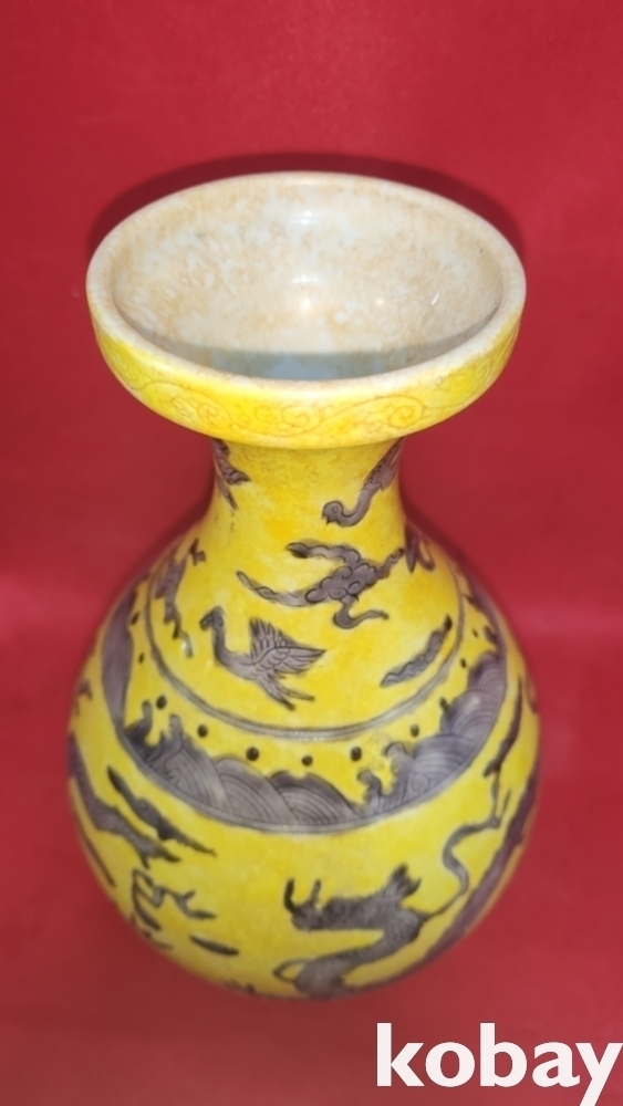 대명홍치연제 관지 있는 황유(黃釉) 쌍용문양 천구병입니다,