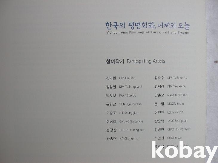 도록은 대체로 가나다 순서로 김기린부터 김창열 김춘수 김택상 남춘모 박서보 윤형근 문범 이승조 이인현 정상화 장승택 정창섭 전병현 하종현 최인선 홍승혜의 작품을 3~5점씩 수록하였다.