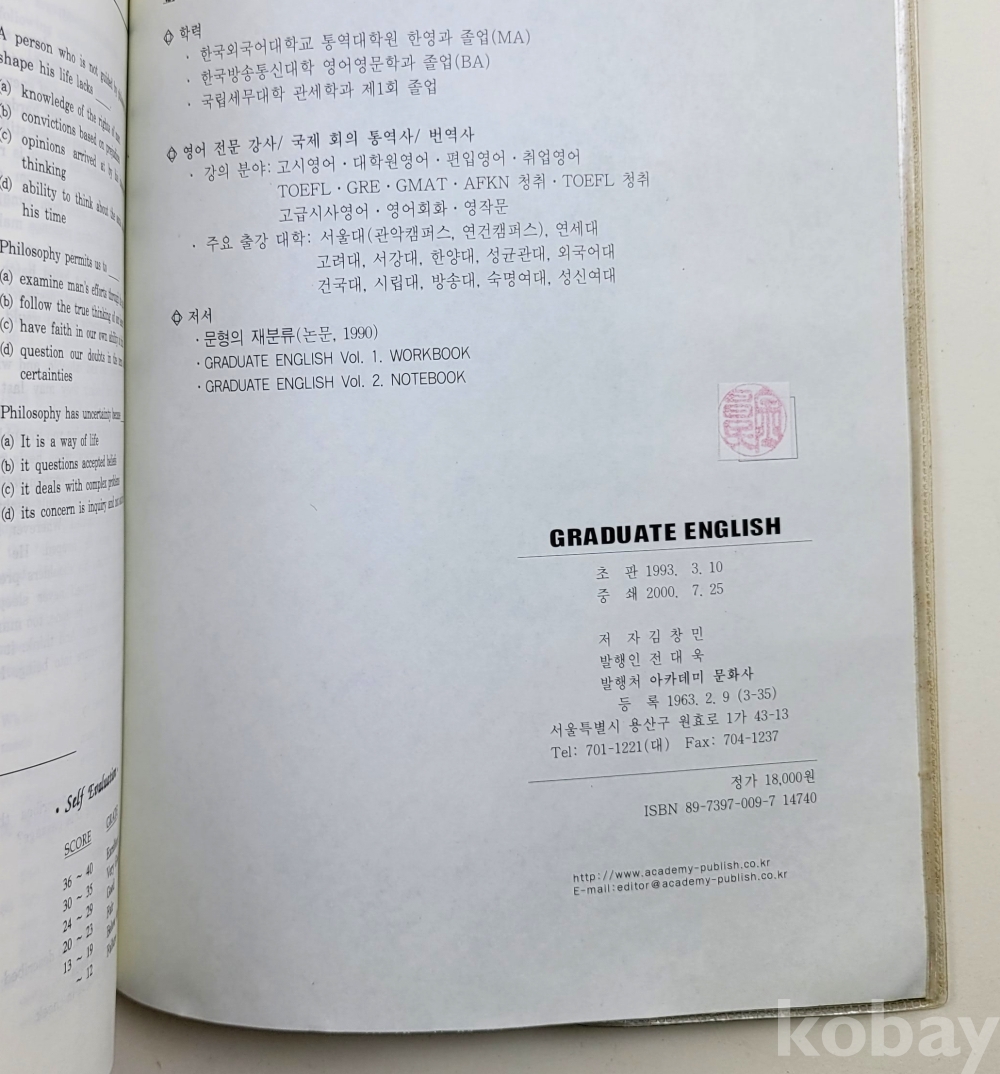 물 품 명 | GRADUATE ENGLISH (1)(2)세트 총 2권 / 2000년 / 아카데미문화사 |